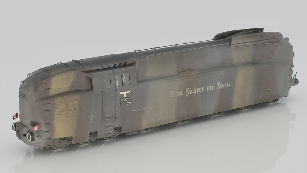 Я конечно люблю мелкосерийные модели, но не датокой степени, может что то не так понимаю.Канадская фирма Eisenbahn Canada, произвела апгрейд своей же модели BR 61 002 WWII 1944 Late Summer Camouflage. Камуфляж и нанесение элементов пропаганды, сделала опять же своя компания EisenArtEditionOne. Даже, если всю работу по апгрейду выполнил господин Dirk Ade и всего, в одном экземпляре в мире, ну не может такая модель стоить 10500 долларов США.