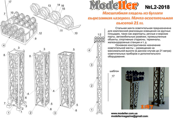 Мачта осветительная 21м H0. Набор лазерной резки для самостоятельной сборки.