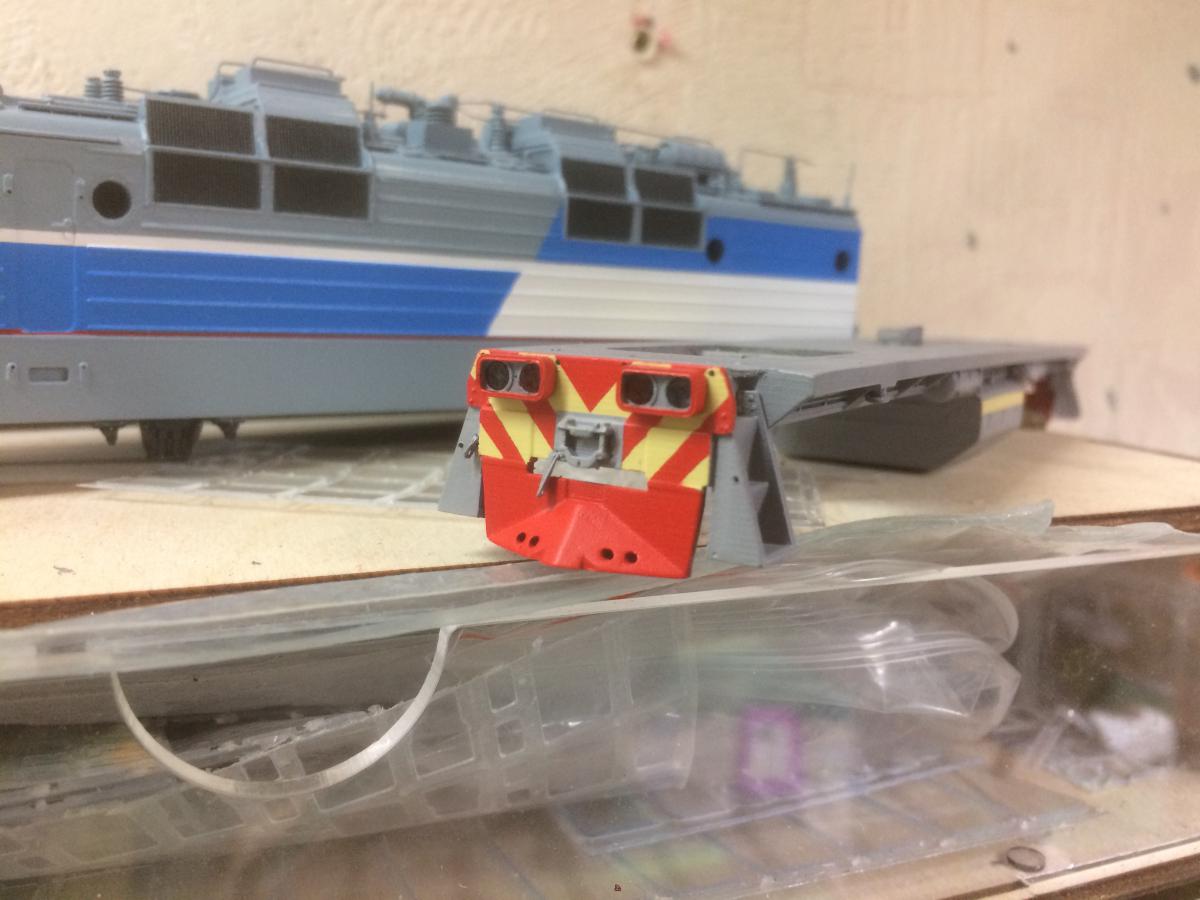 Рендеры модели выкладываю. Мастер-модель выращивается на 3D принтере, дальше тиражирование путем литья из смолы. В качестве ходовой можно использовать модель тепловоза М62 (и любые вариации) от фирмы Roco. Рама имеет посадочные места для установки этих редукторов, а стендовые телеги выполнены в точной копии редукторов Roco. В комплекте идут 2 вида буферных фонарей.