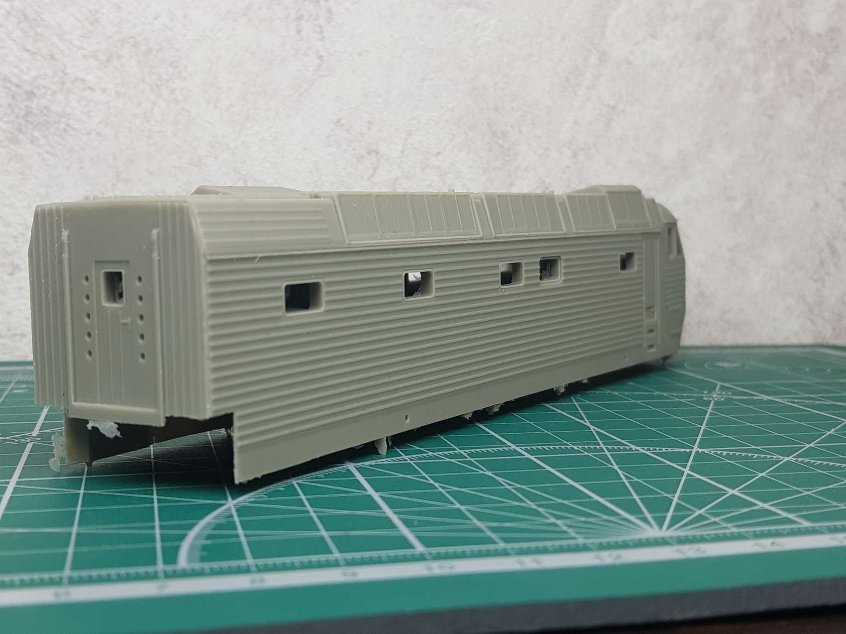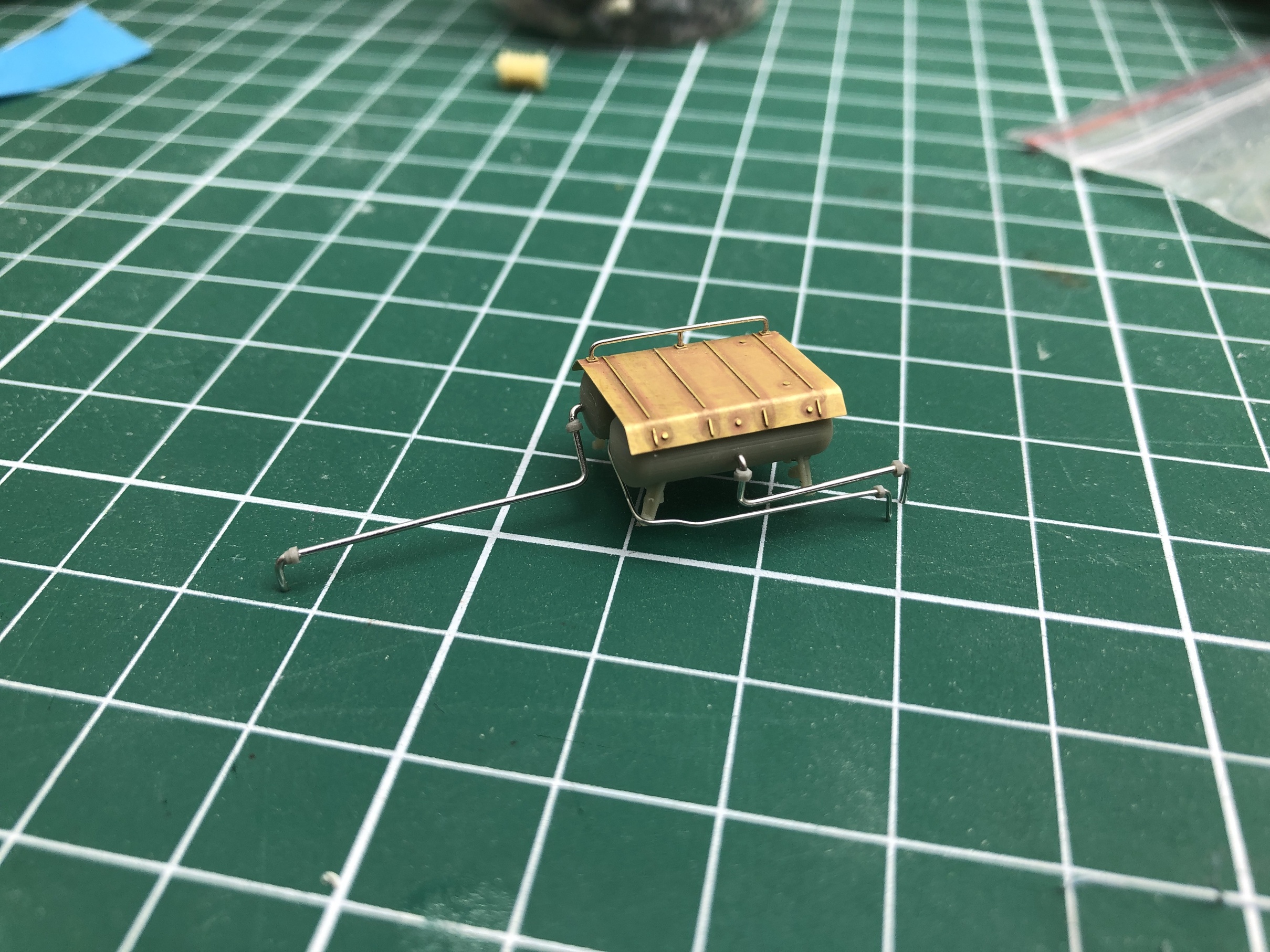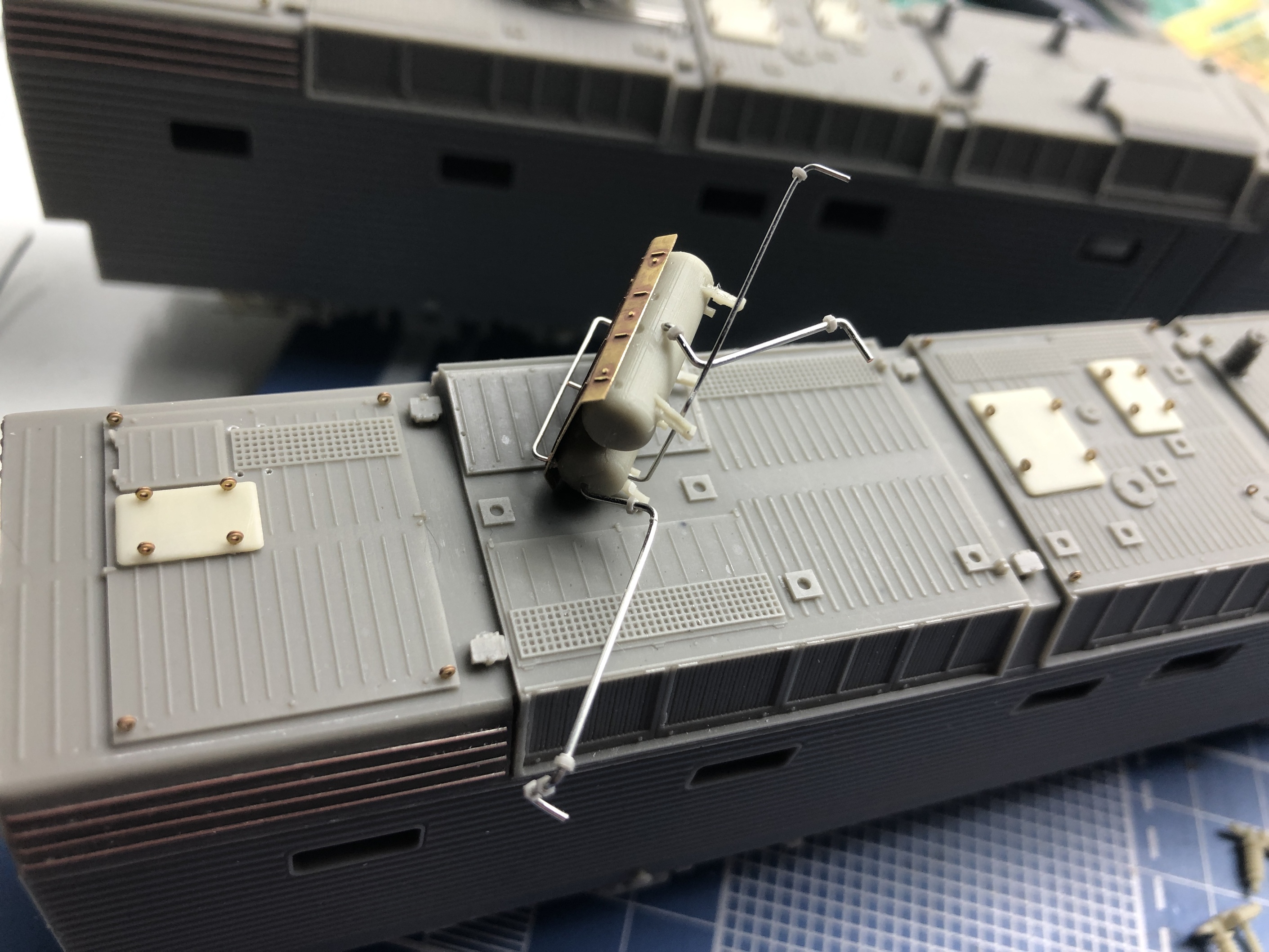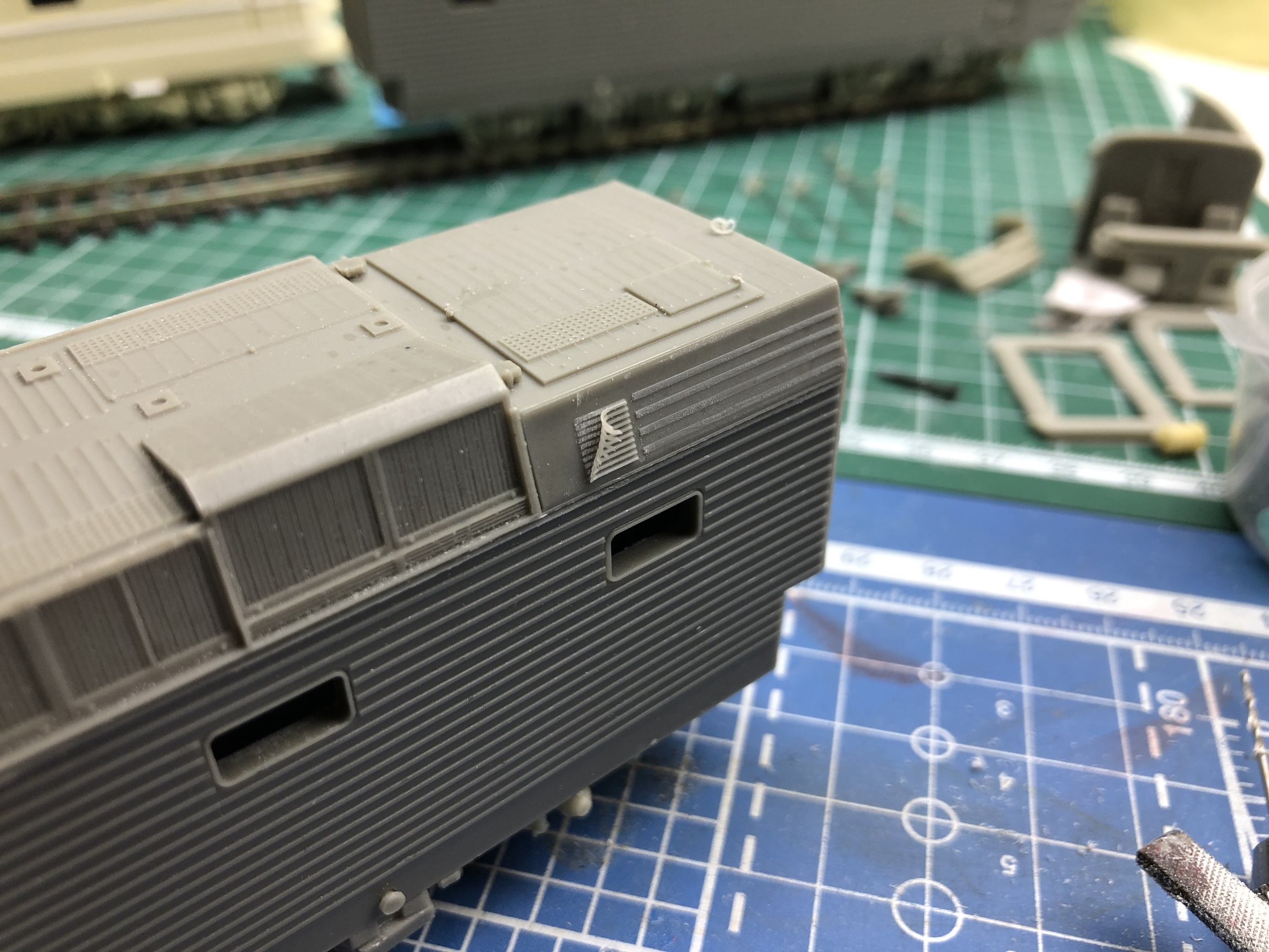 1. Сточил гофры в задней части крыши, и жалюзи компрессора, они шли на 001,002 машинах, гофры сделал из проволоки 0,4мм с последующей обточкой, придав им плоский вид.