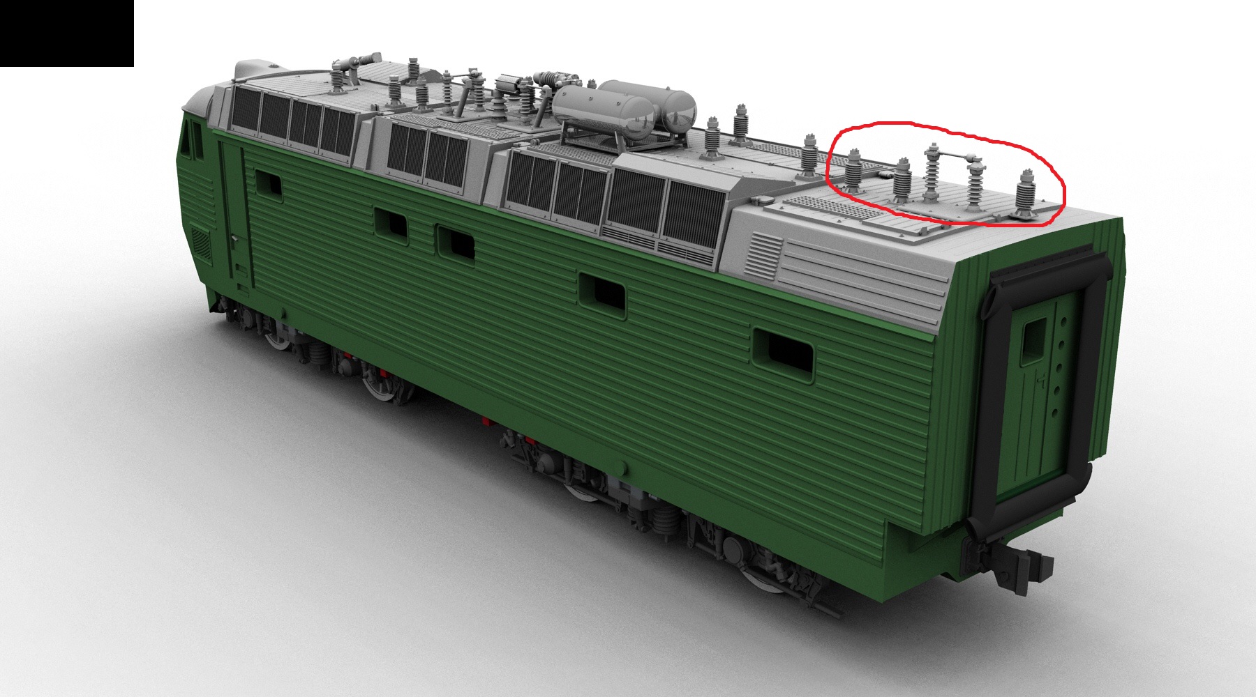 4. Электровоз ЧС8 имеет 2 секции из значительными отличиями между ними ...на одной секции в конце секции есть разединитель а на второй его нет, Вам надо было сделать обе секции как в 3-д так и в ките но кто то по ленился... ))))