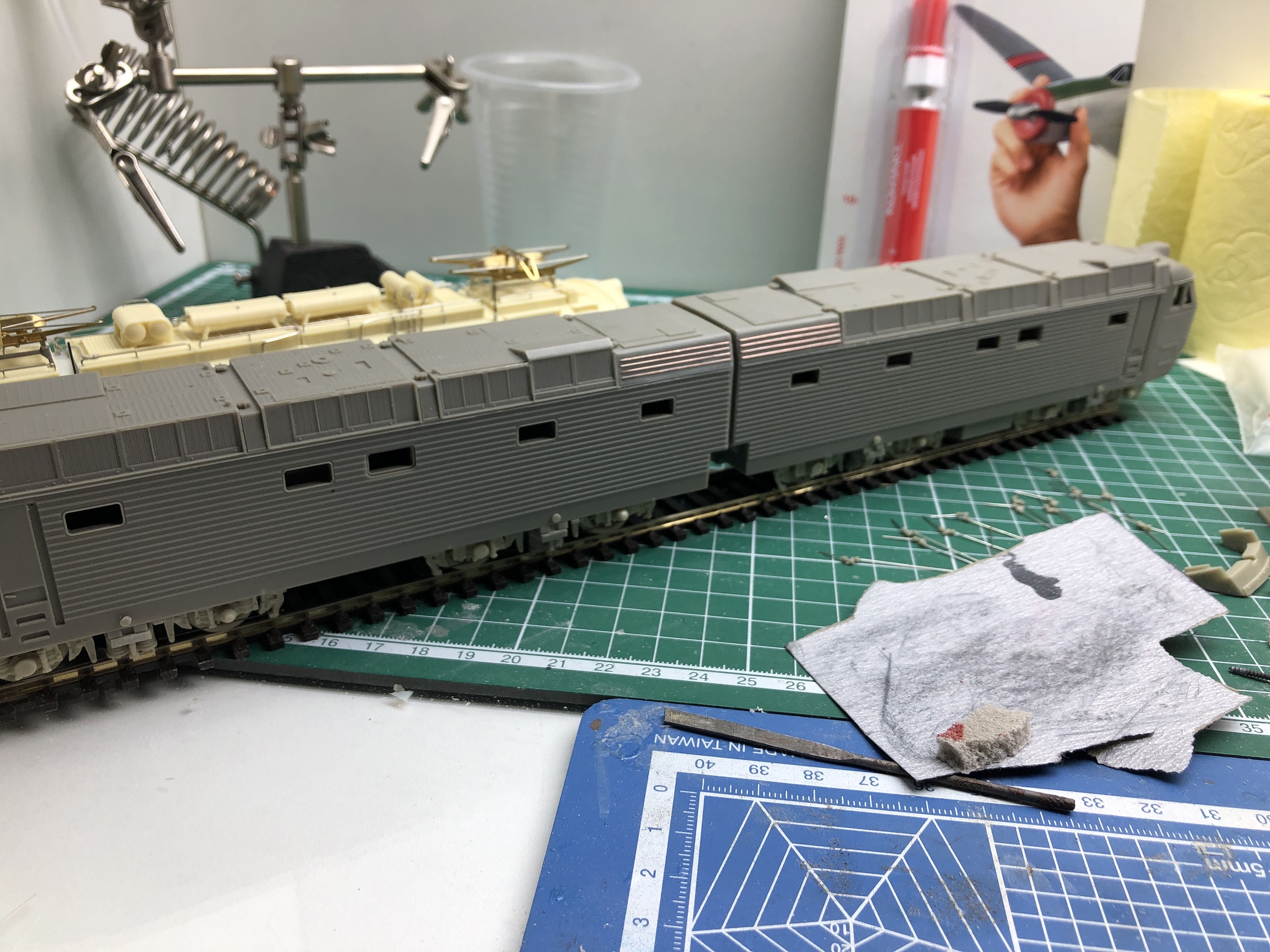 Вов, раз сделал и болты на буферном, сточи и розетку автосцепки с какой-то прокладкой под ней. Они не от мира сего и конского размера. И приклей нормальную розетку уже без прокладки. И над розеткой на буферном под люком к кондиционеру сделай накладку - она стоит как на ЧС6/200,так и на ЧС7 и ЧС8. Почему они сразу ее не сделали. Я делал ее, обрезав скрепку из степлера.