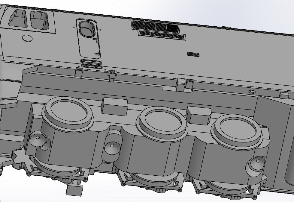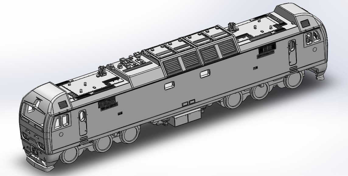 Рендеры модели выкладываю. Мастер-модель выращивается на 3D принтере, дальше тиражирование путем литья из смолы. В качестве ходовой можно использовать модель электровоза e151 (и любые вариации) от фирмы Roco.