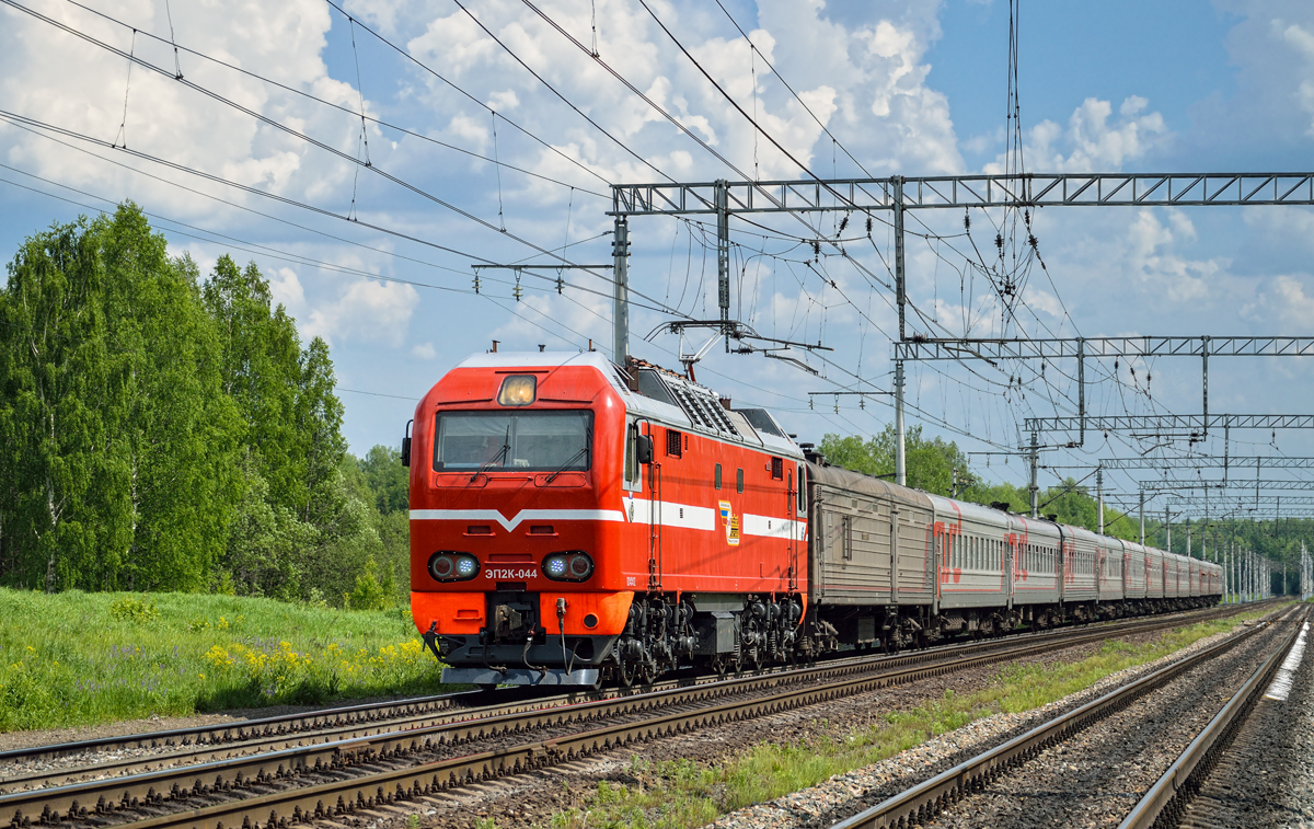 Электровоз ЭП2К-044. С завода поступил в депо ТЧЭ-3 Барабинск, Западно-Cибирской железной дороги. На данный момент перекрашен в корпоративные цвета РЖД.