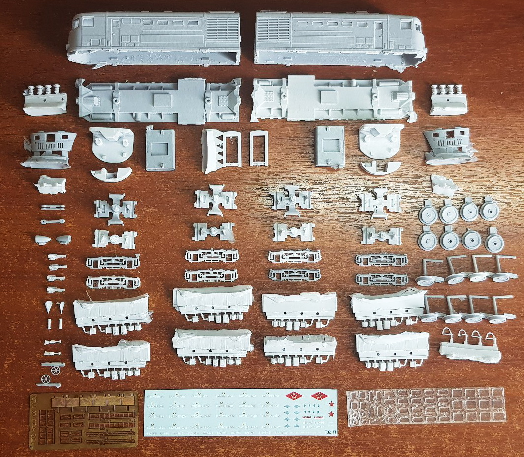 Модель тепловоза серии ТЭ2 в масштабе ТТ (1:120). Модель изначально стендовая, не заточенная под какую-то конкретную ходовку. Но внутри кузова хватает места, так что при желании ее возможно будет обмоторить. В комплекте декалей есть номера для тепловозов серии ТЭ6. Набор включает в себя детали для создания разных версий тепловоза под разные эпохи.