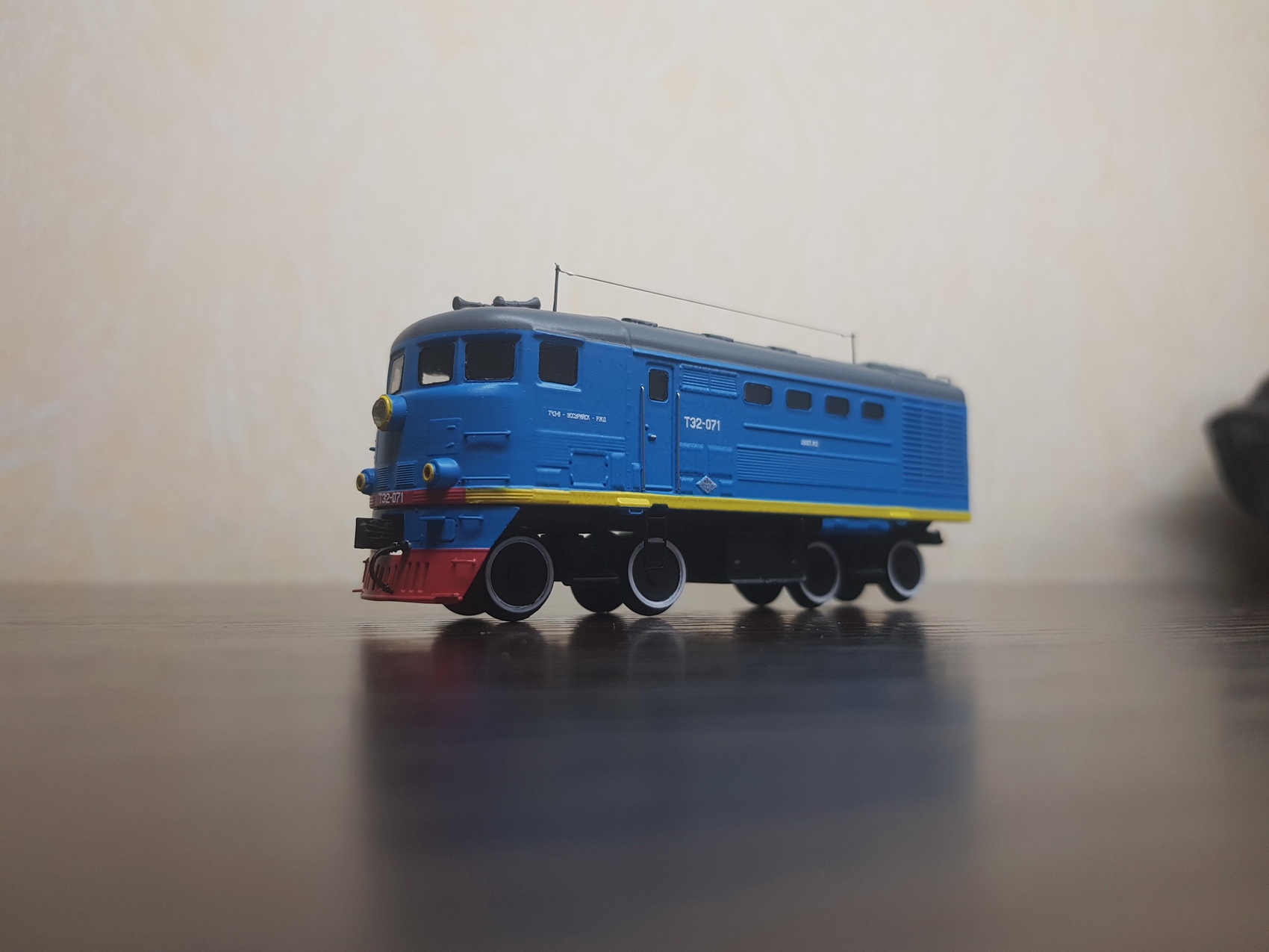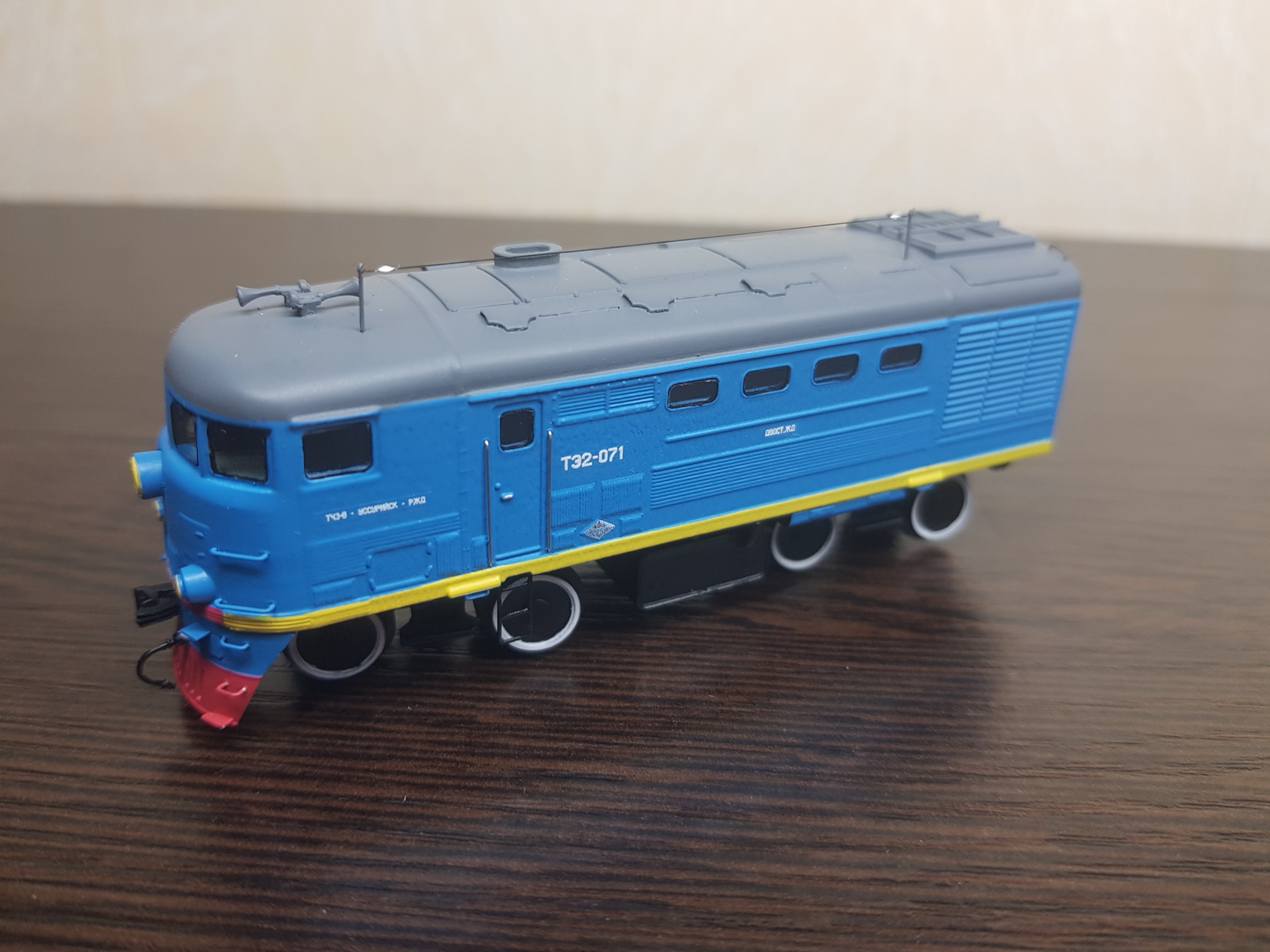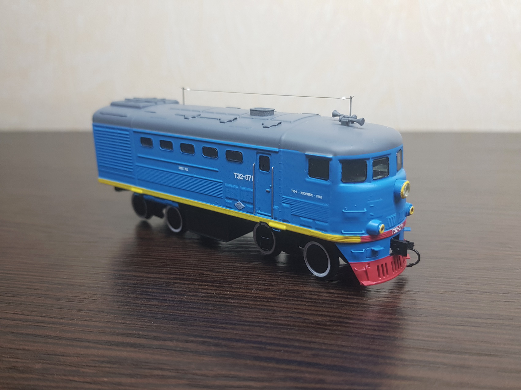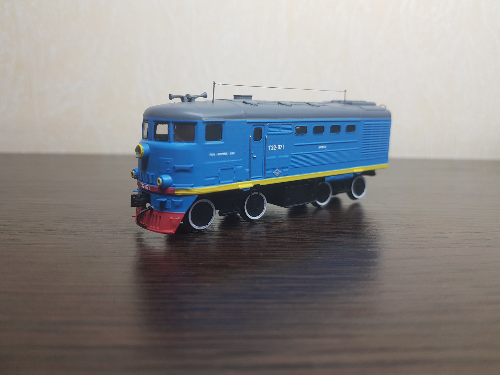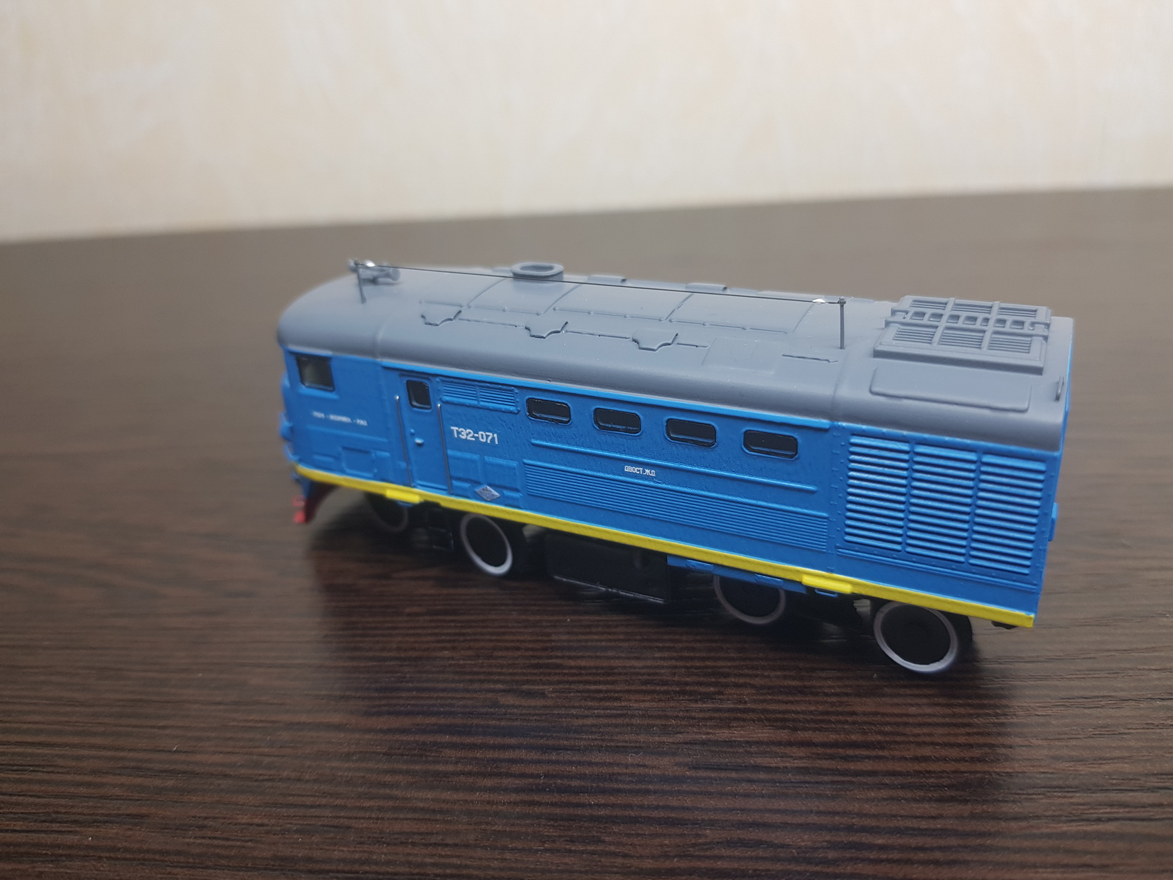 Секция тепловоза ТЭ2-071 1951 года постройки, эксплуатируется в таком виде в депо ТЧЭ-6 Уссурийск Дальневосточной железной дороги и по сей день. Модель подготовлена под обмоторку, поэтому многие детали не установлены и прилагаются в пакетиках.