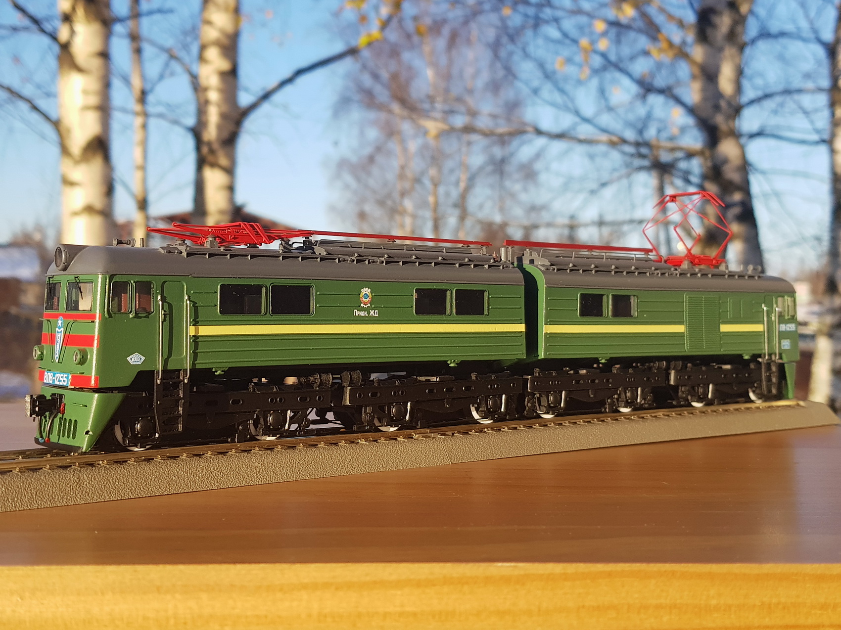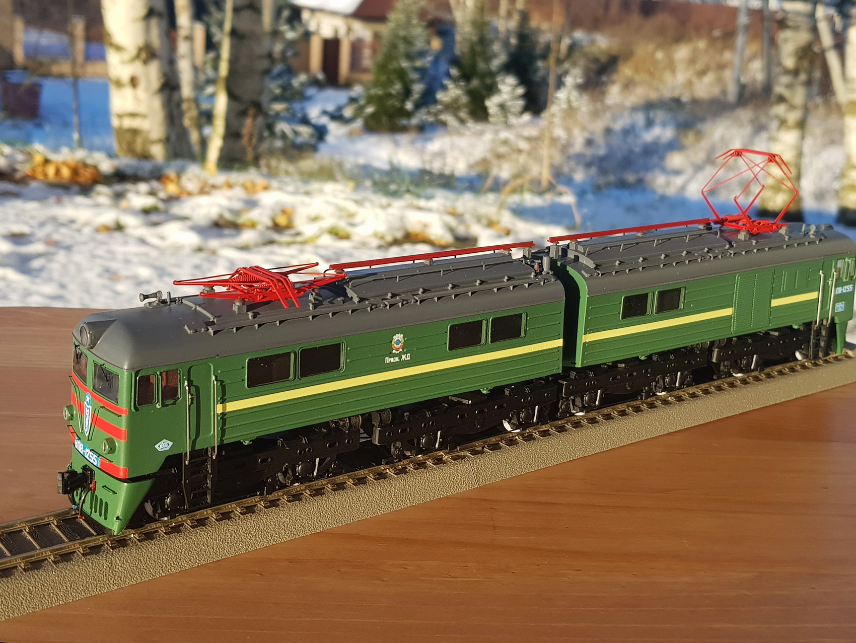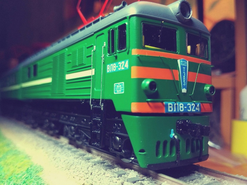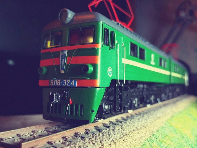 Модель электровоза ВЛ8, собранная из данного КИТа московским моделистом Иваном Поповым на ходовой части 2-х роковских Е44 на макете Сергея Иванова. На макете видны и другие локомотивы Сергея, переделанные из моделей Пико, Роко, Евротрейн - М62, ЧМЭ3, ТЭ, ТГК2, ВЛ19.