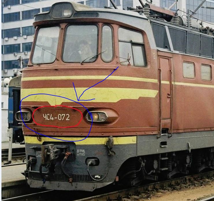 Окраска не совсем заводская, т.к. крыша у чехов красилась серебрянкой, а скосы крыши над кабинами у ЧС4 были какого-то желтоватого цвета. Это окраска через какое-то время (года 2-3) после начала эксплуатации, когда окрасили только одну крышу по "нашей традиции" в серый цвет.