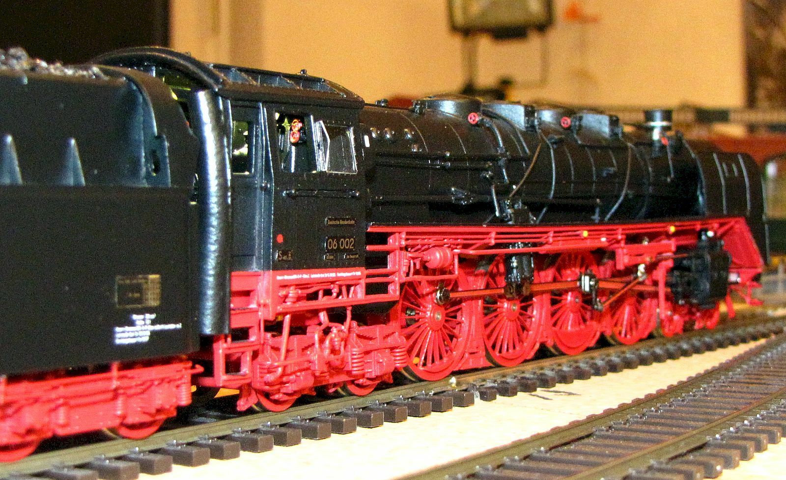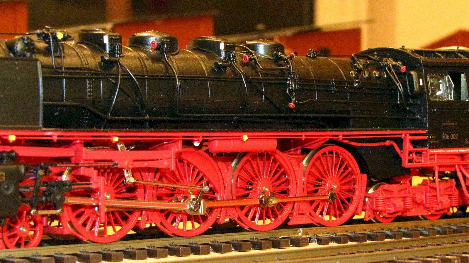 · Модель в основном изготовлена из металла (локомотив и тендерное шасси, котел, контуры, кабина и корпус тендера). Вес = 900 г, длина над буфером 320 мм