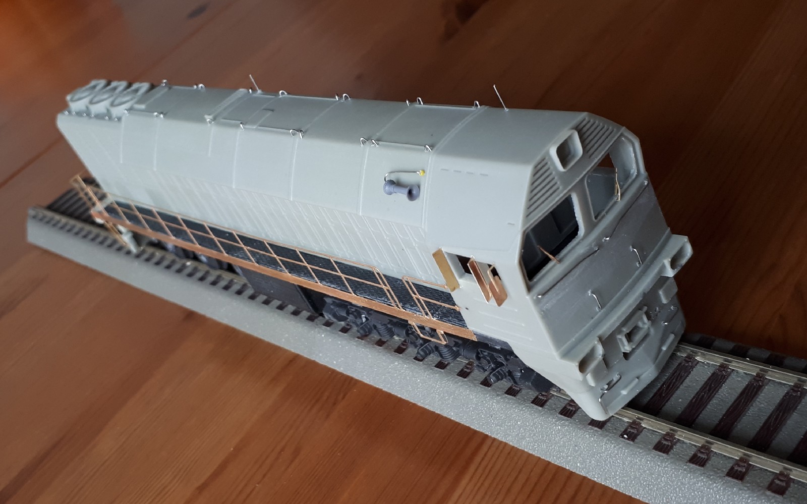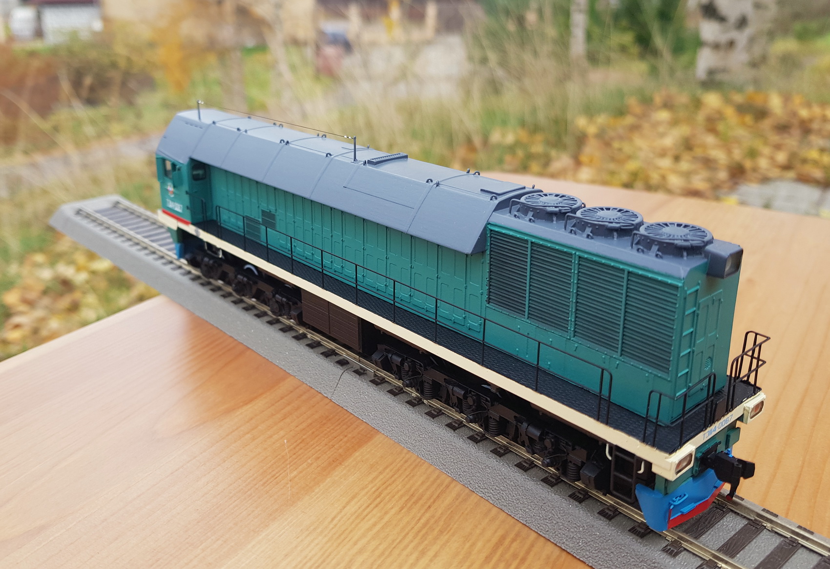 Рендеры модели выкладываю. Мастер-модель выращивается на 3D принтере, дальше тиражирование путем литья из смолы. В качестве ходовой можно использовать модель тепловоза BR 232 (и любые вариации) от фирмы Roco. Рама имеет посадочные места для установки этих редукторов, а стендовые телеги выполнены в точной копии редукторов Roco. Второй вариант ходовой части готовит Александр Локшин. Для обмоторки ТЭ114 можно будет использовать его телеги, разработанные для модели тепловоза 2ТЭ10у, платы освещения специально под ТЭ114 появятся в ближайшее время.