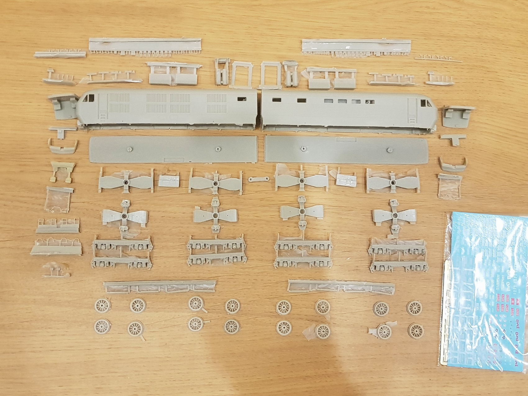 В набор входит полный комплект смоляных деталей для сборки стендовой модели электровоза ЧС6-001-010 или ЧС200-003-012, включая всю мелочевку, набор травленых деталей, комплект фрезерованных стекол и набор декалей с разными номерами. Рекомендую использовать пантографы от Дмитрия Анютина (Светтофор). Но поскольку посадочные размеры у пантографов ЧС6 (10PP) и ЧС200 (Сп-6М) разные-то все изоляторы клеятся отдельно под нужный тип пантографа.