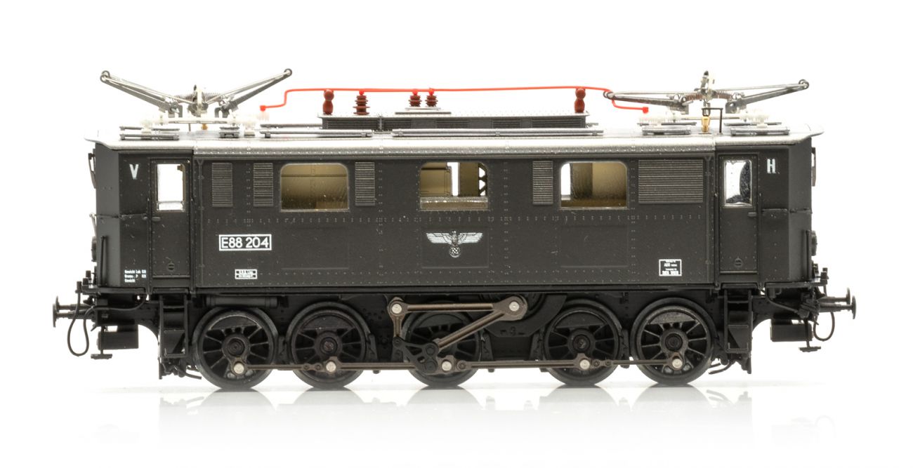 Окраска очень интересная (речь о фото справа) и на моделях пожалуй редкая. Это точно не привычный для Рейхсбана "blaugrau" (RAL 7018), а пожалуй тёмно-серая краска RAL 7021, которой, как утверждается в источниках, красили электровозы Рейхсбана, начиная примерно со второй половины 1942 года.