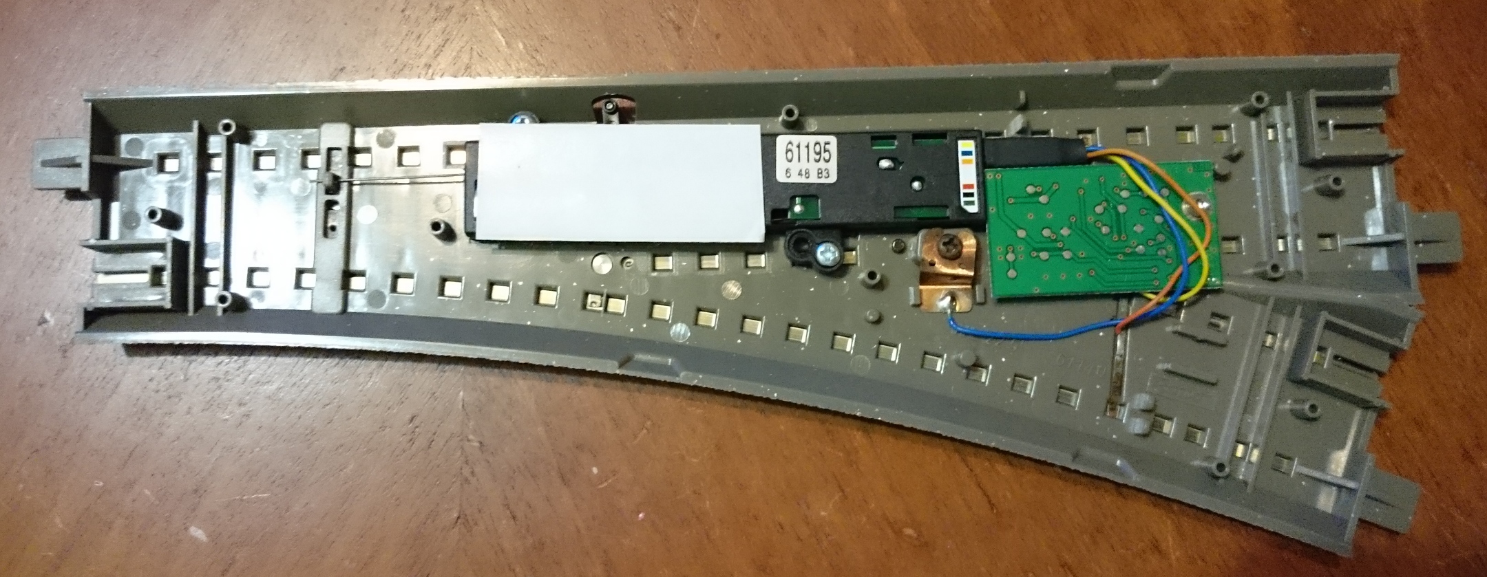 А вот вариант оцифрованной мною стрелки: Тут хорошо видно, что клемма подключена к электроприводу, и хрестовина будет запитана в зависимости от положения стрелки. Даже при отсутствии декодера