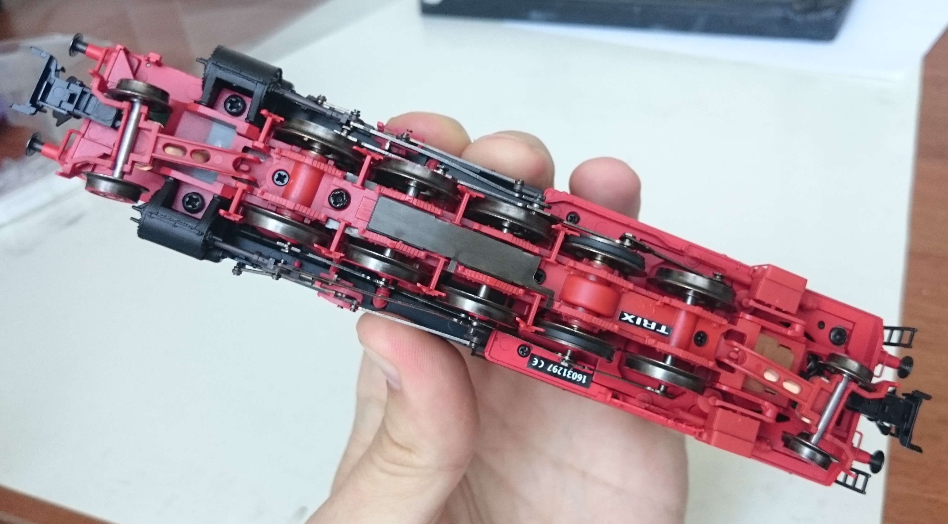 1. Непропорциональный токосъем. С левого рельса снимается всеми 7-ю осями локомотива, а с правого только пермыми 4-мя ведущими осями. Да еще и какой-то несчастной пластинкой, прикрученной вместо "лыжи". Я понимаю - унификация производства и тому подобное, но все-равно считаю это крайне неприемлимым для лимитированной модели да еще и с таким ценником!