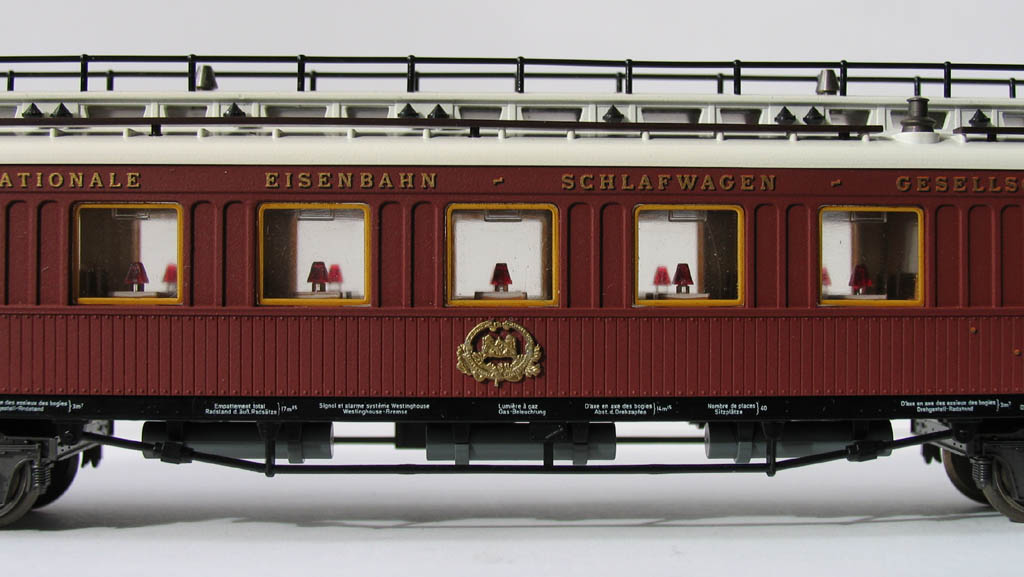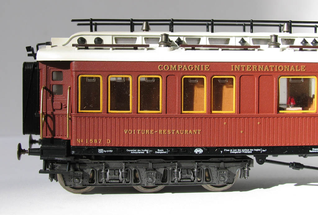 В данном случае представлен вагон-ресторан компании ISG (немецкий филиал/представительство CIWL). Вагоны ISG строились на немецких предприятиях, на основе технической документации CIWL . В отличие от франко-бельгийских вагонов CIWL (у которых с двух сторон в верхней части вагона над окнами были надписи на французском: Compagnie Internationale Des Wagons Lits Et Des Grands Express Europeens), на вагонах ISG с одной стороны была надпись на немецком: Internationale Eisenbahn Schlafwagen Gesellschaft, а с другой стороны на французском: Compagnie Internationale Des Wagons Lits Et Des Grands Express Europeens.