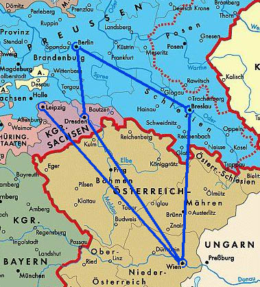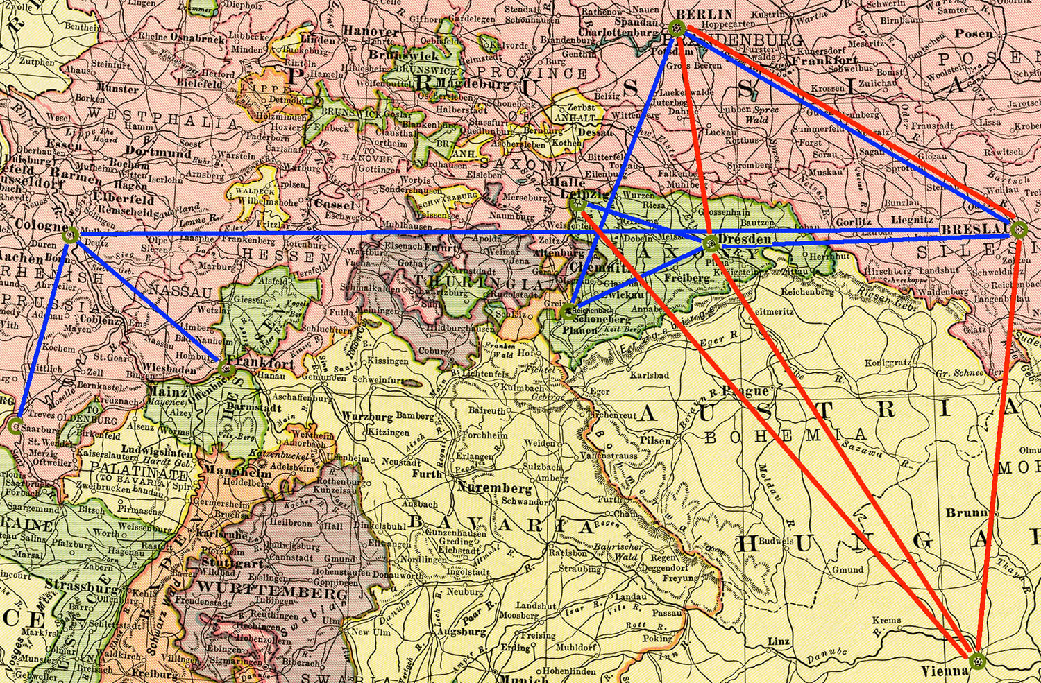 Берлин-Вена (через Дрезден), с территории Пруссии, через Саксонию, в Австрию