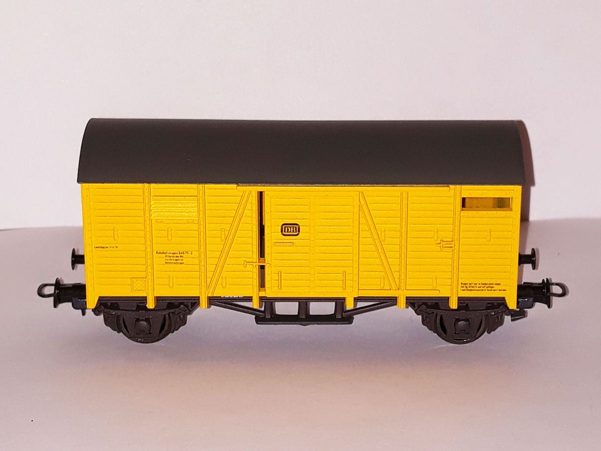 Упакован вагон в картонную коробку и блистер, при чем коробка и блистер, на самом деле, от вагона близкой к Оппельну, но послевоенной конструкции - Gms Nordhausen, да еще и с тормозной будкой. Часть накладных деталей (в основном, на двери вагона) установлена, остальные прилагаются в мешочке.