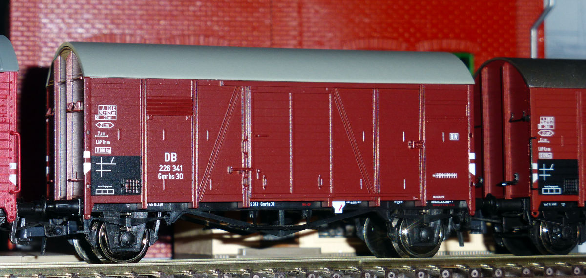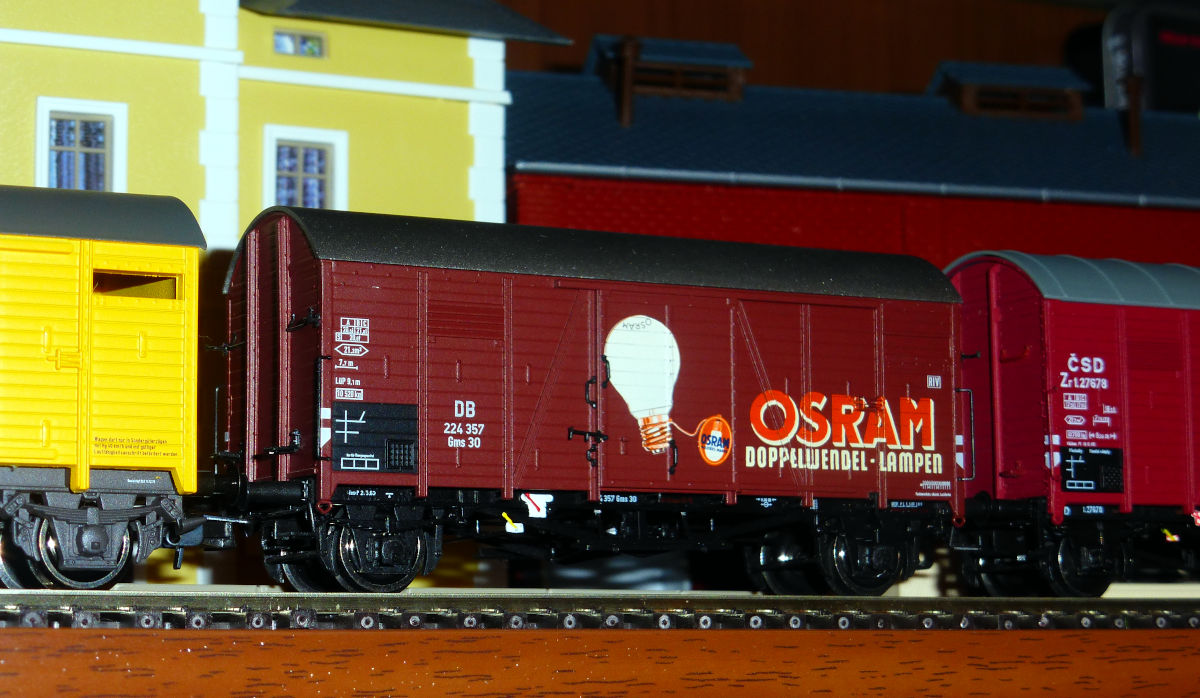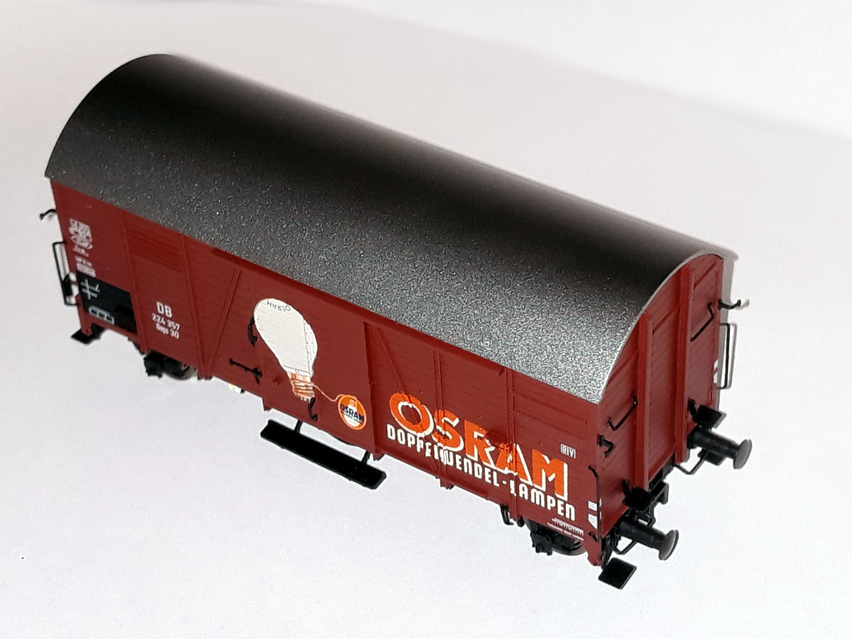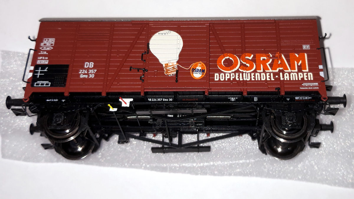 • Brawa 47963 (DB, III эпоха, обозначение Gрms 30 c послевоенной рекламой Osram)