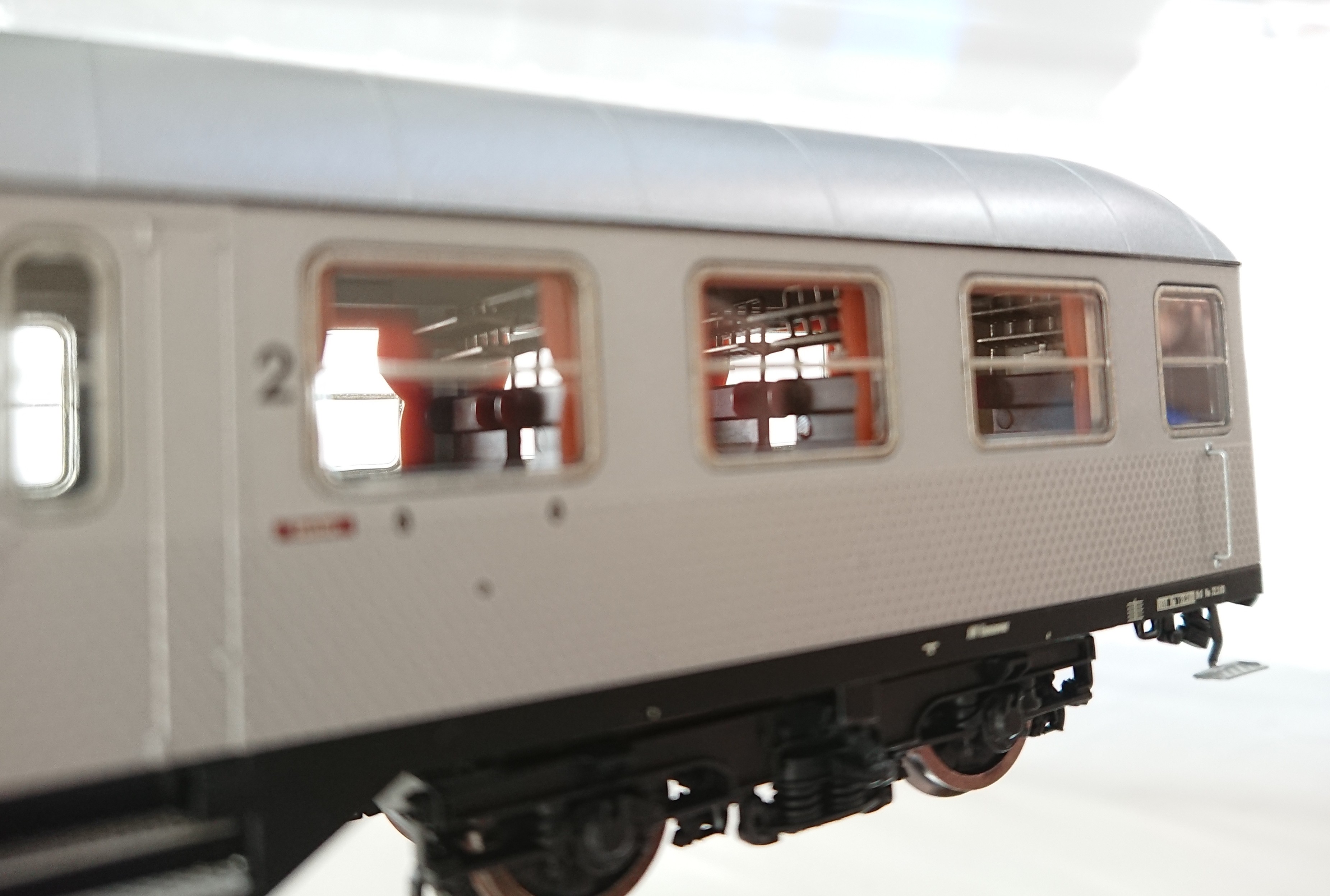 Начнем с фото: Вагон ооочень длинный, поэтому фотографировать не всегда удобно. По всем показателям - это полностью современная высокодетализированная модель с превосходными надписями. В целом по уровню мне чем-то напомнило полноразмерные вагоны подобного типа от Рого производства конца 90-х - начала 2000-х. Однако здесь интерьер и подвагонное проработано еще на 2 порядка лучше. Также не забыли они про современную электронную начинку - это ж все-таки ЕСУ