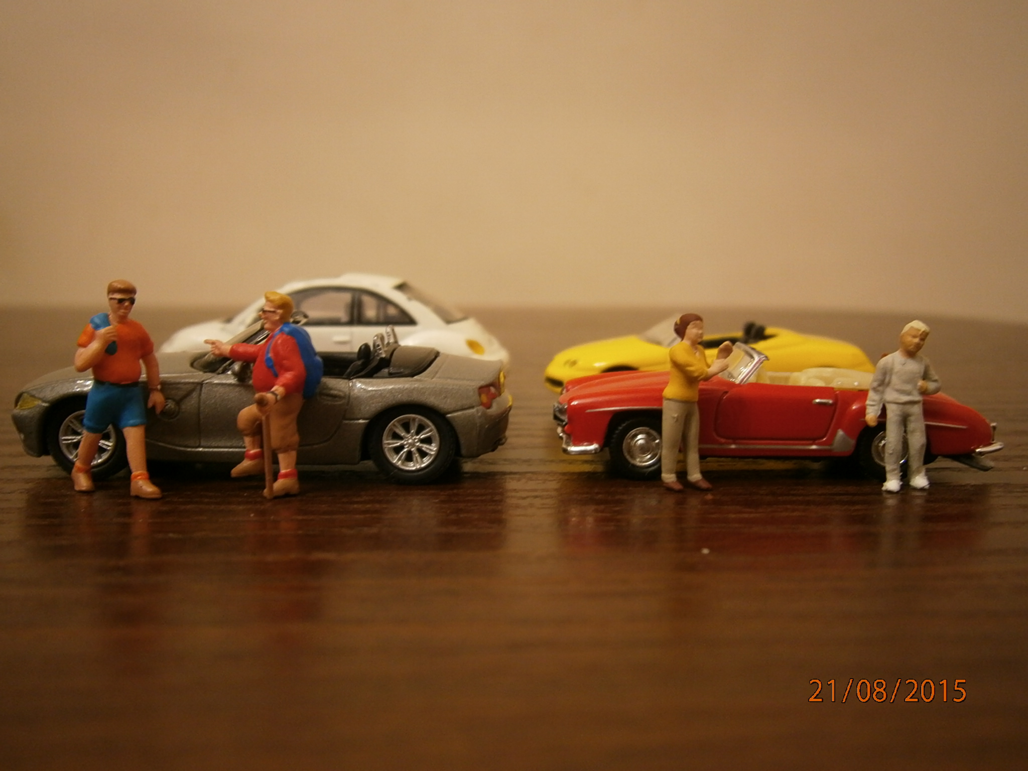 Фігурки поряд з BMW Z3 "Vollmer", а поряд з Mercedes-Benz 190SL "Prieser"