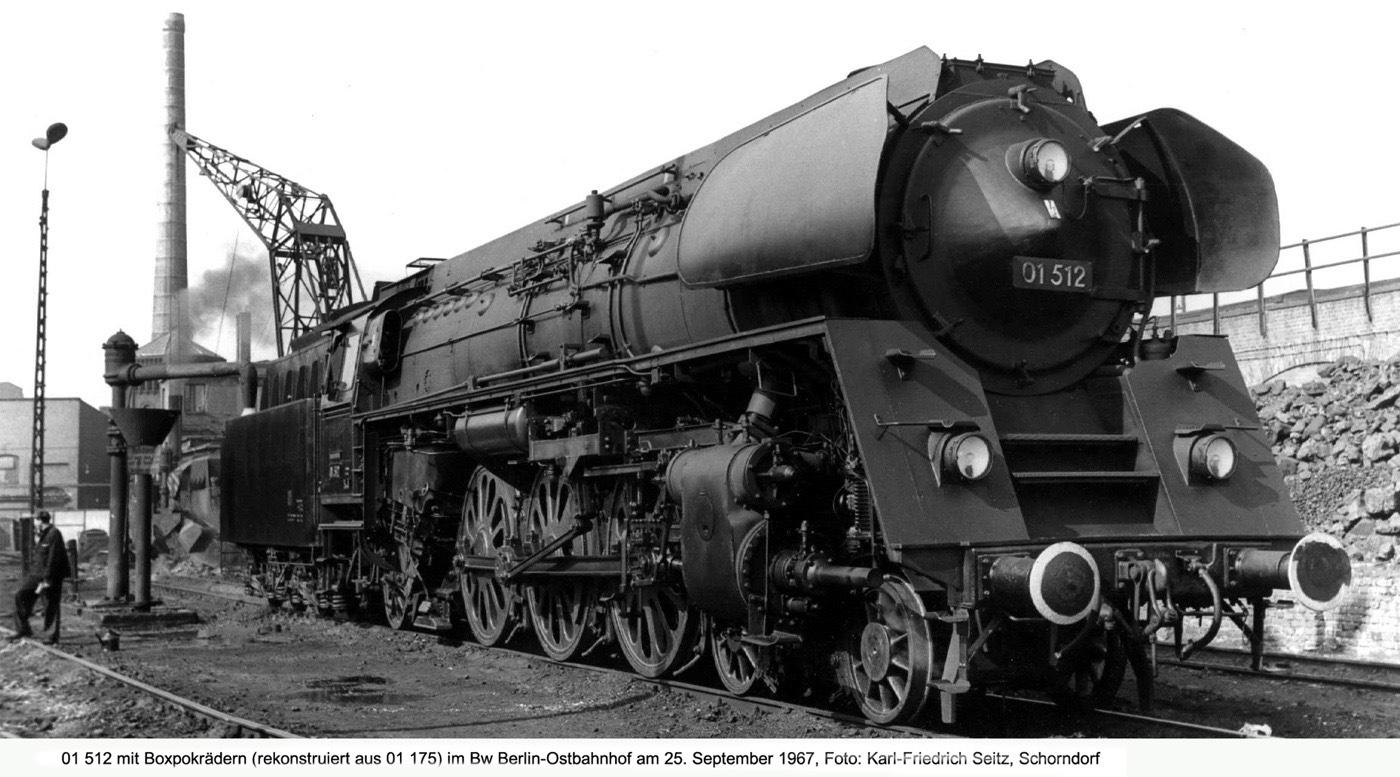 Это реконструированный Br 01 - паровоз для тяжелых пассажирских поездов, вождения экспрессов. При реконструкции машине заменяли котел и ставили ряд дополнительного оборудования. Если поглядеть на исходник, то видно, что от него мало осталось (кроме тендера и колесной формулы): Сравните это фото с картинками выше. Реконструкция прошла успешно - официальная дата "выхода на пенсию" аж 1991 год. А на фото и видео данный паровоз попадается с поездами вплоть до середины 90-х.