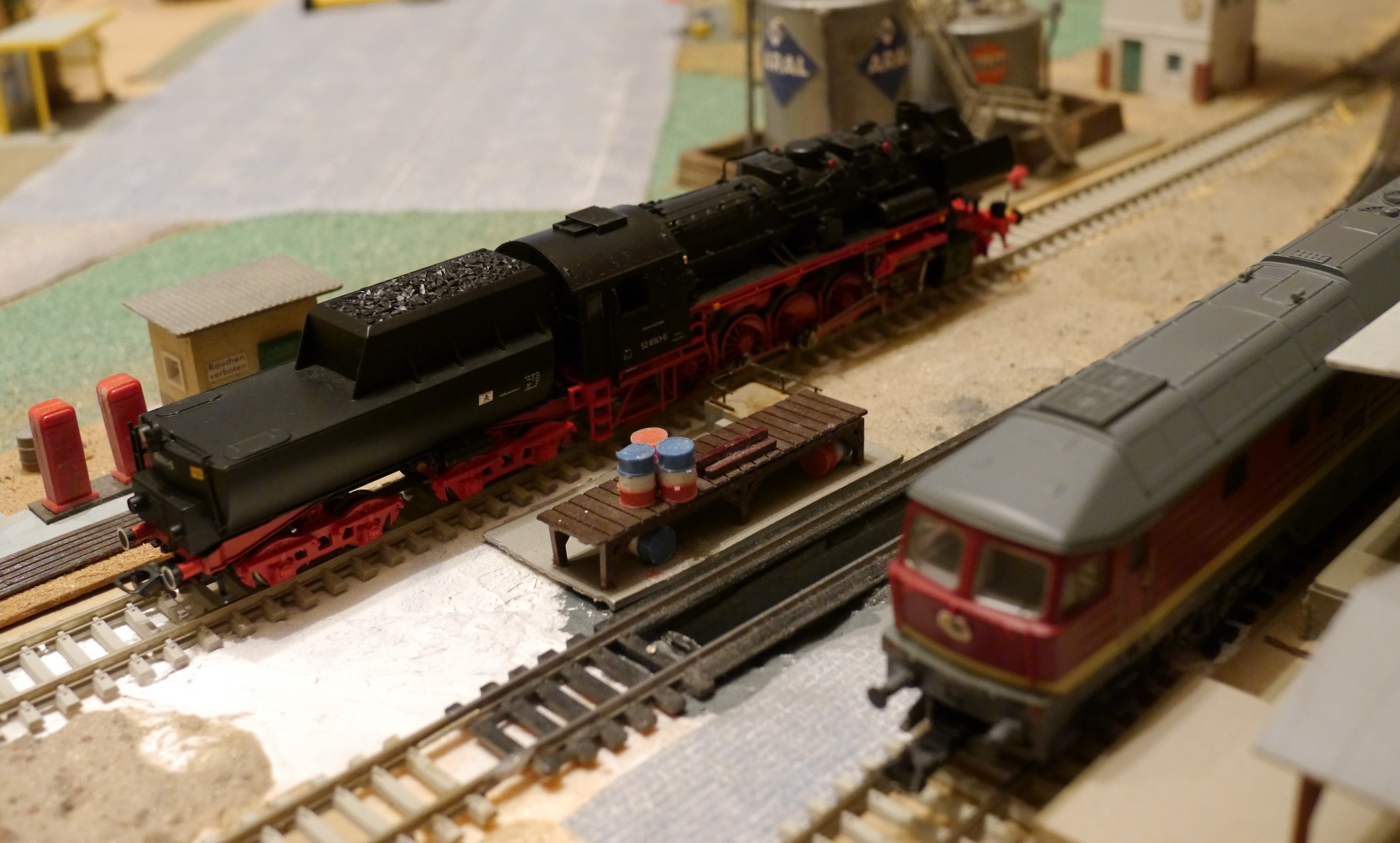 Все руки не доходили отфоткать и рассказать о долгожданном приобретении. За него огромное спасибо Вове (vover)! Дело в том, что этот паровоз (речь о прототипе) - фактически "визитная карточка" паровозного парка ГДР, наряду с 01.5 Reko. Это была глубокая модернизация (с заменой котла) хорошо известного 52-го "кригслокомотива". Переделывать 52-е в "реко" начали летом 1960-го года, а служили они фактически до 90-х годов. Водили как грузовые, так и пассажирские поезда. Причем довольно забавно было наблюдать в 80-х годах пассажирские поезда из "семиоконников". У меня есть альбом по ГДР-овским 52-м, и когда-то делал для Вовы сканы... но пока не могу их найти