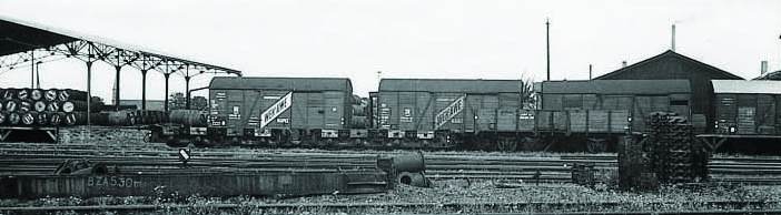 Жестяные полосы выглядят вблизи вот так (это австровенгерский грузовой) : А вот пример с рубероидом (или тканью, не видно). Крайний слева "Бремен" (два других - крыша из жестяных полос). Собственно, по цвету видно рубероид. На части, которая под навесом были дыры. Постройка вагонов (всех трех) после ВМВ, вряд-ли была уже ткань. Как видите, один и тот же типа вагона, одного времени постройк - крыши разные.