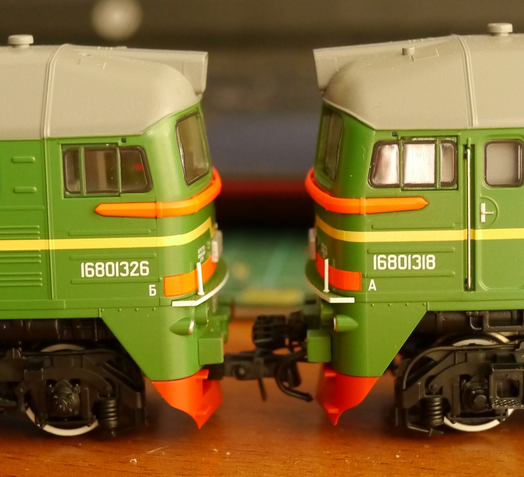 Накладные детали к модели позволяют сделать как «полочный», так и «покатушечный» вариант. У тепловоза легко отсоединяется НЕМ-шахта, ставятся прототипичные путеочистители. В розетку устанавливается имитация СА3. Есть даже полноценные жоксы (кабеля межсекционных соединений).