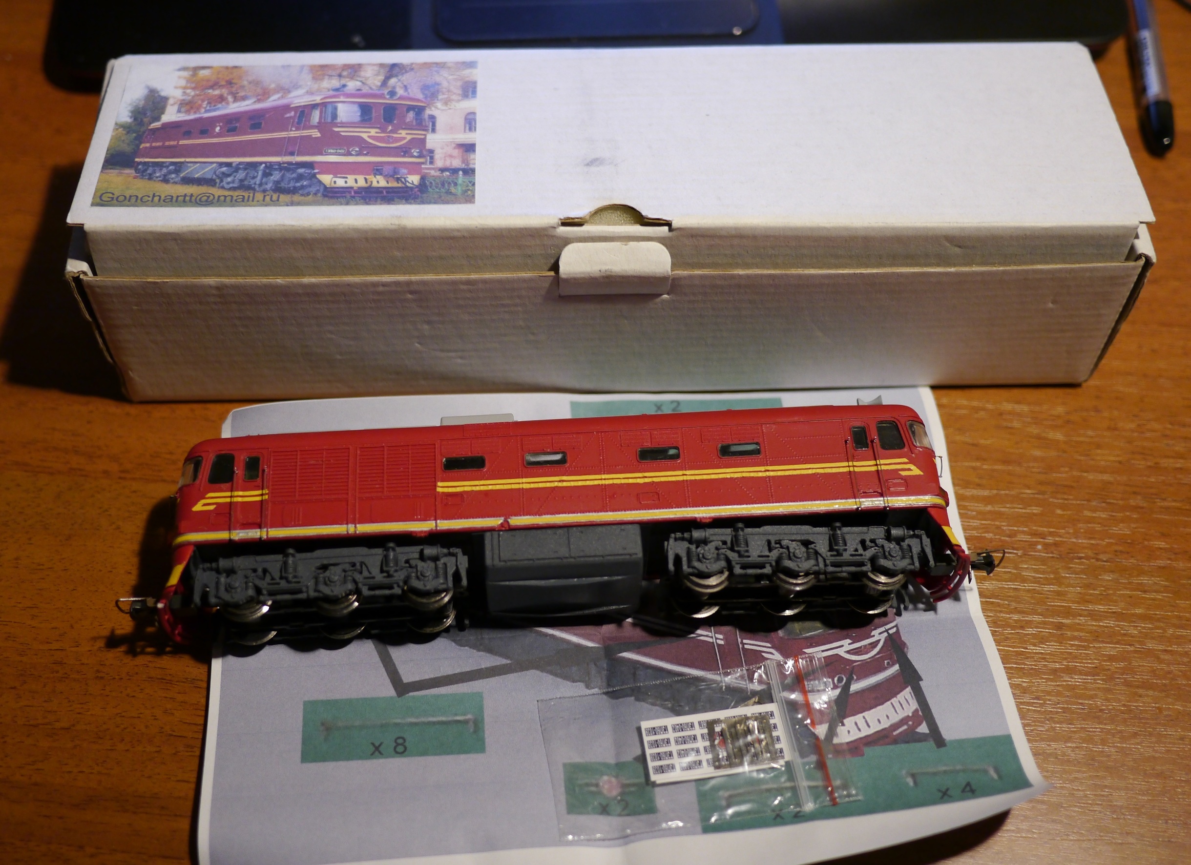 Итак, начну. Наверное, с комплектации :) Модель продается в простенькой коробке, но упакована надежно. Внутри собственно тепловоз, пакетик накладных деталей и инструкция по установке этих самых накладных.