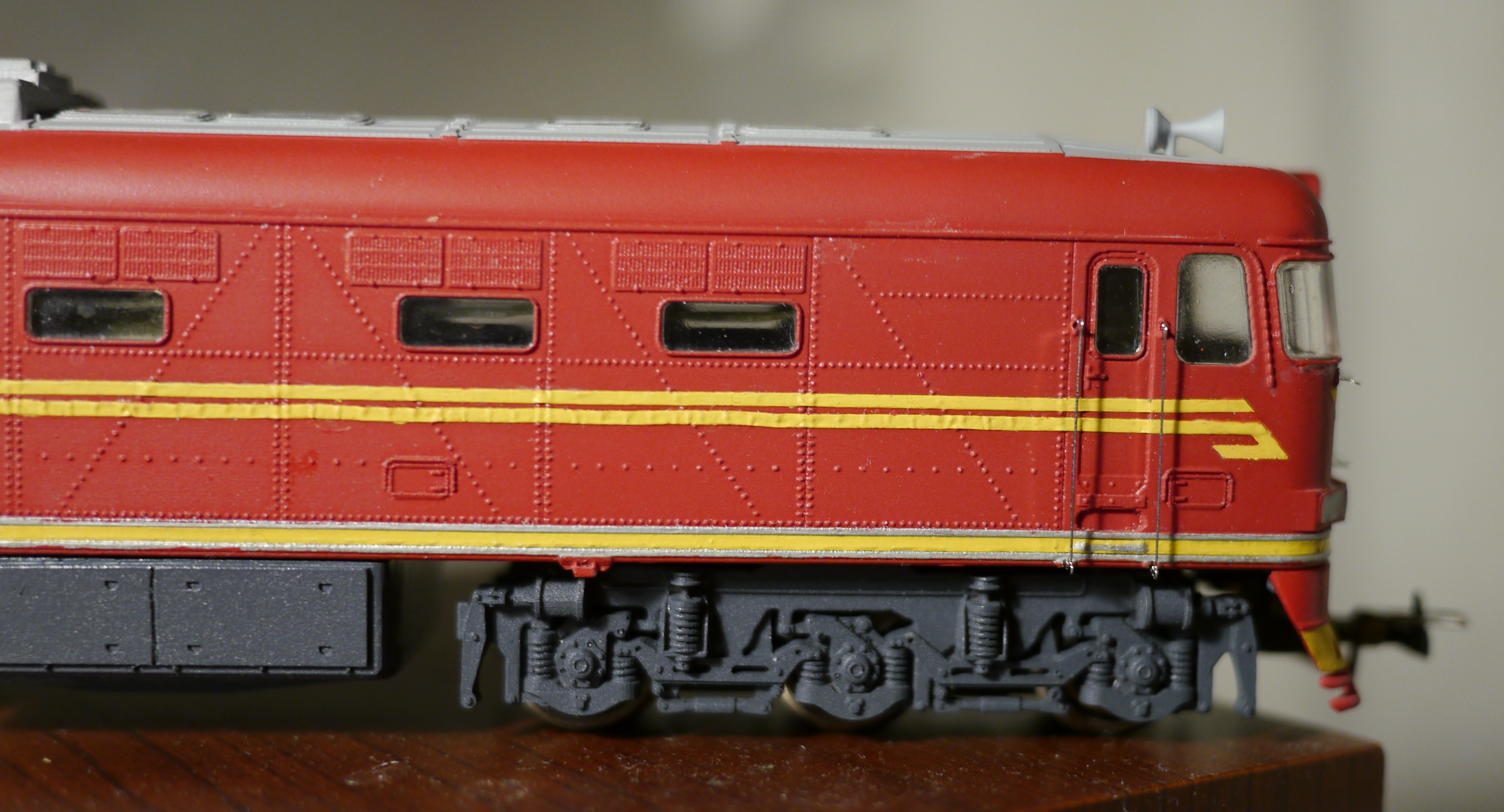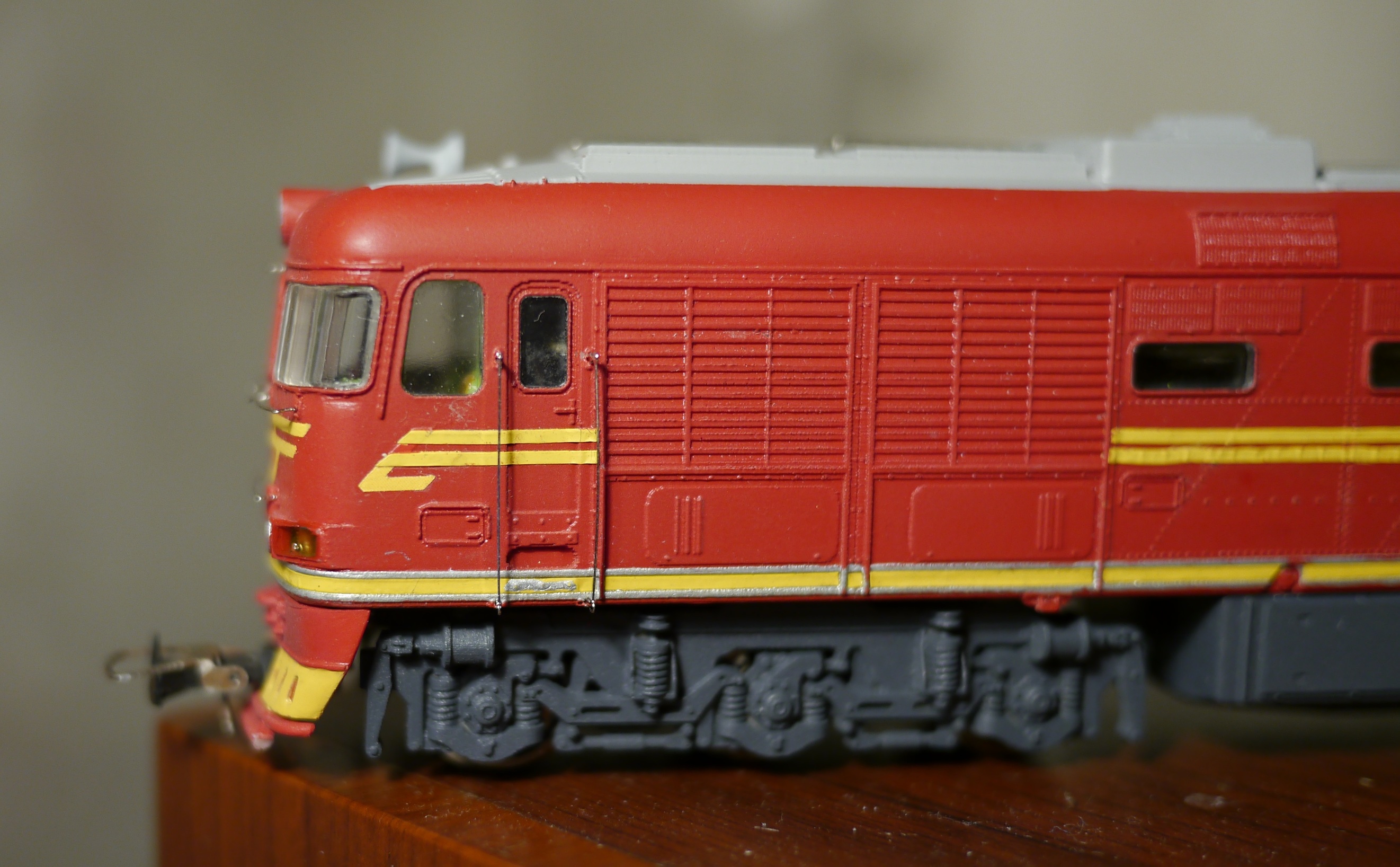 Полосочки желтые конечно "слабовато" исполнены, и даже "ступеньки" от 3D принтера на контуре двери определимы глазом, этот тепловоз нужно доводить до ума ещё, как то его поспешно походу покрасили.