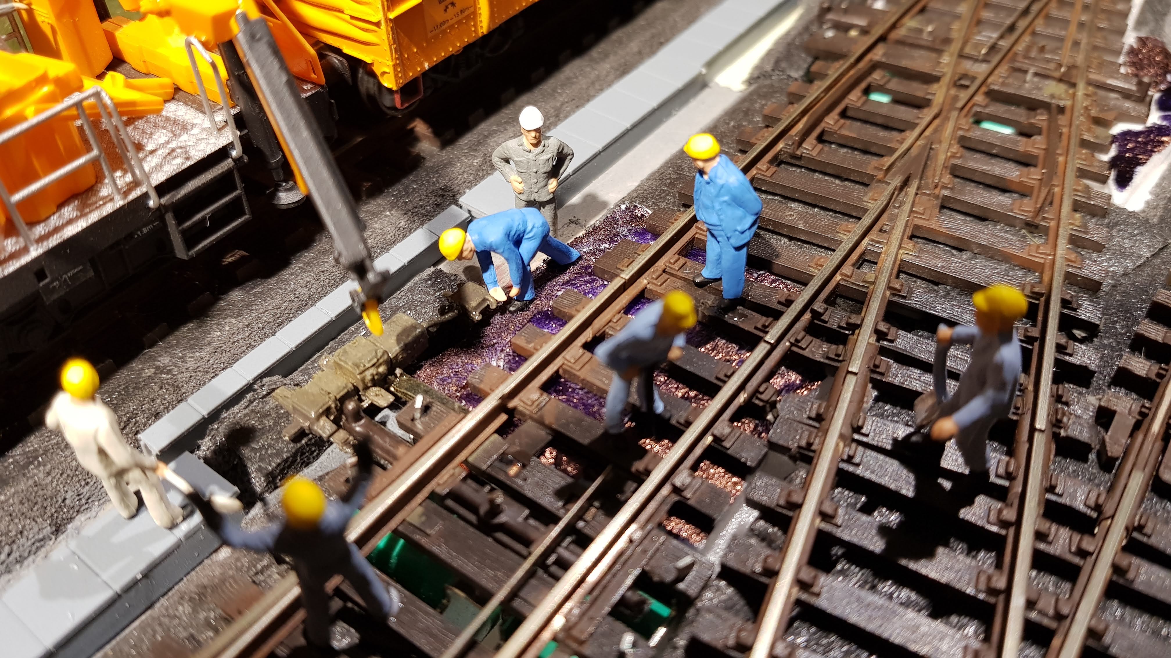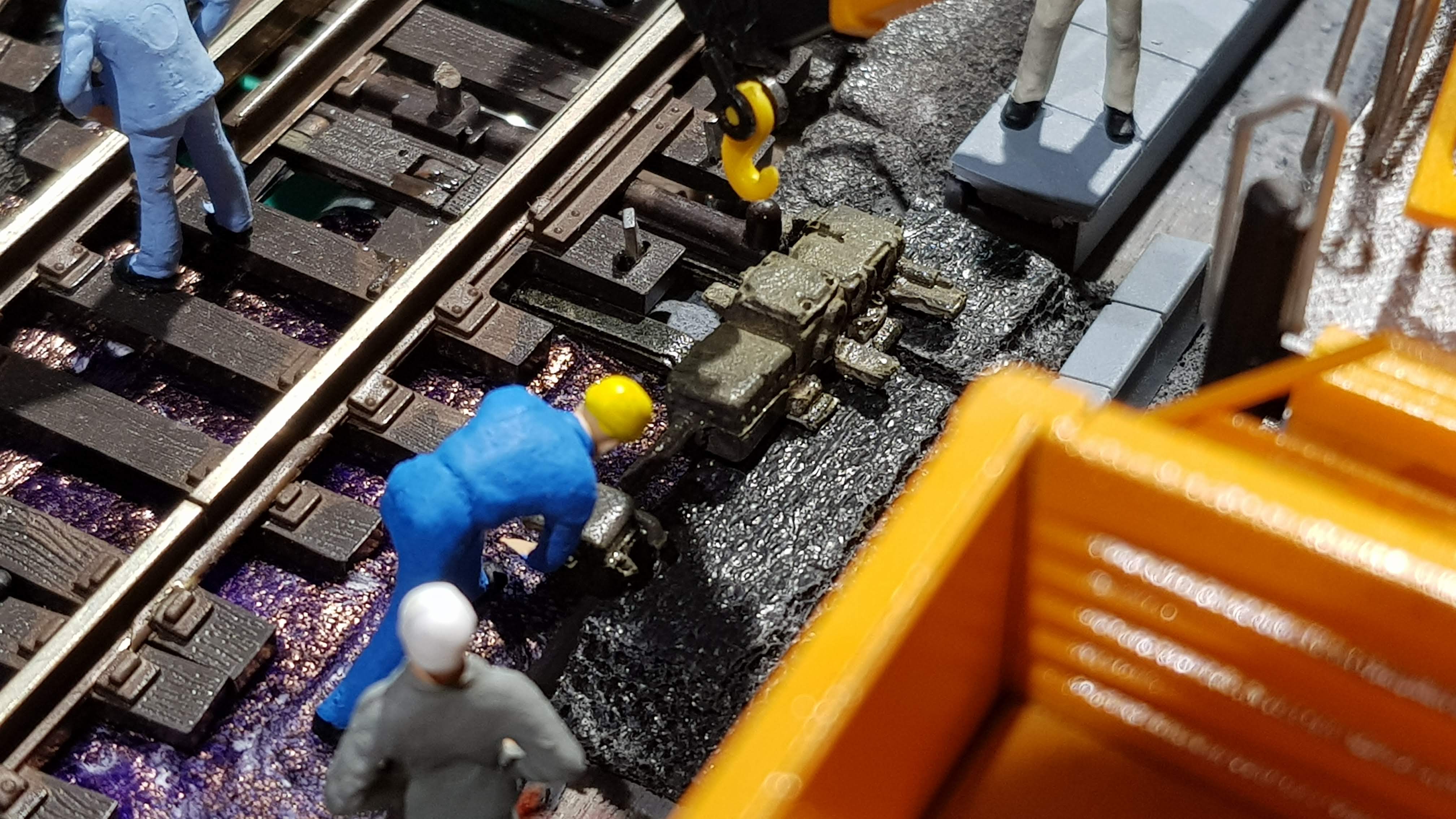 После окраски выяснилось что краска изолировала остряки на некоторых стрелках, пришлось смывать и восстанавливать электропроводность :D