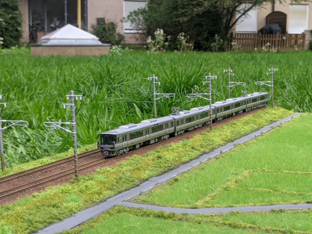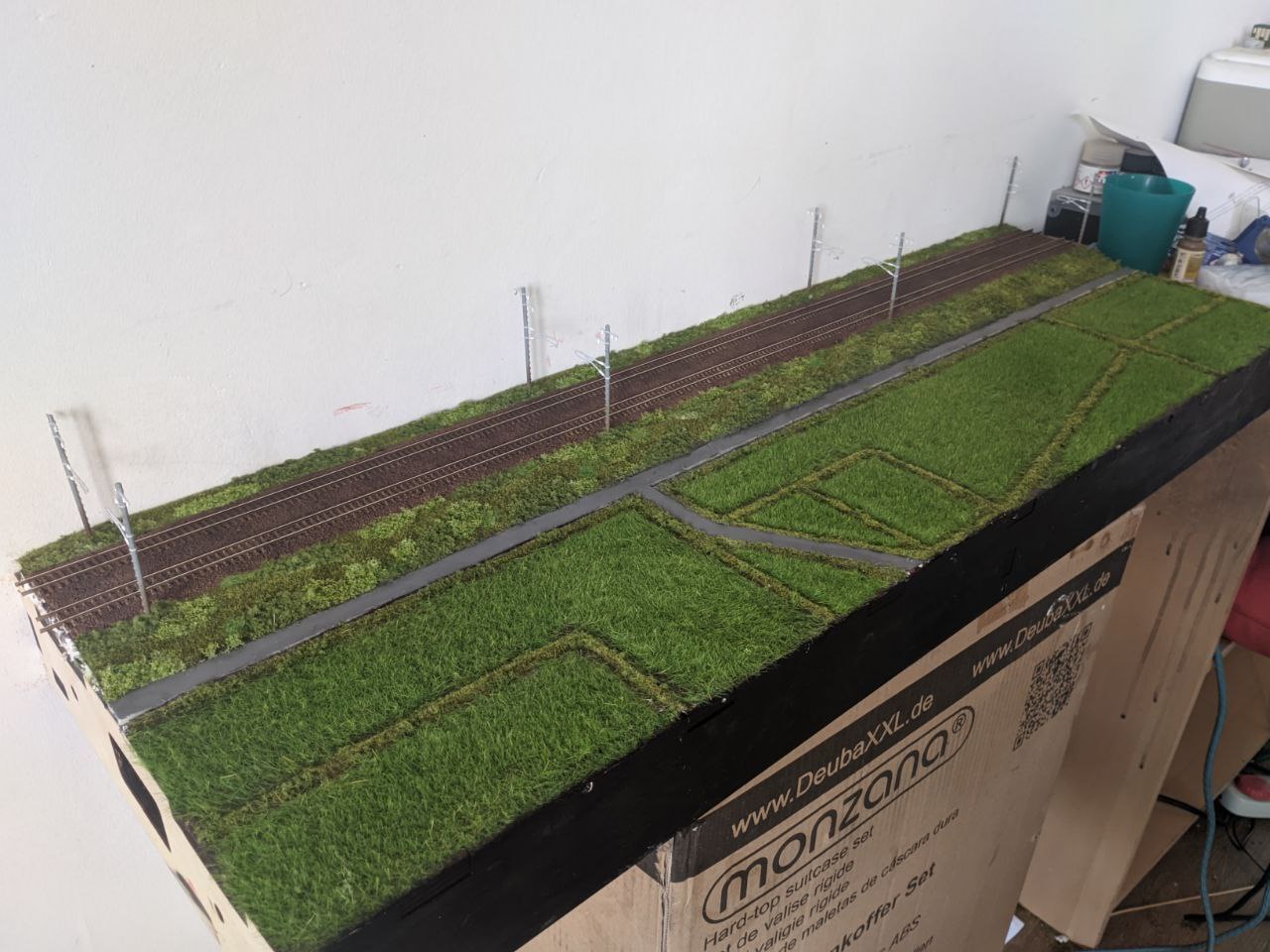 Мой первый модуль в N-ке, представляющий кусок перегона в 5-6-й эпохе вдохновленный Японскими пейзажами JR West на главном ходу между Осакой и Киото, модуль представляет 2 пути на небольшой насыпи с небольшой дорогой посреди рисовых полей. Впервые довелось работать с флокатором и озеленением макета, а так-же создавании ландшафта. Модуль выполнен по стандарту T-track и с небольшой доработкой могут участвовать в выставках в таких-же стандартов. Ландшафт выполнен из обычного пенопласта, бумаги и шпаклёвки.