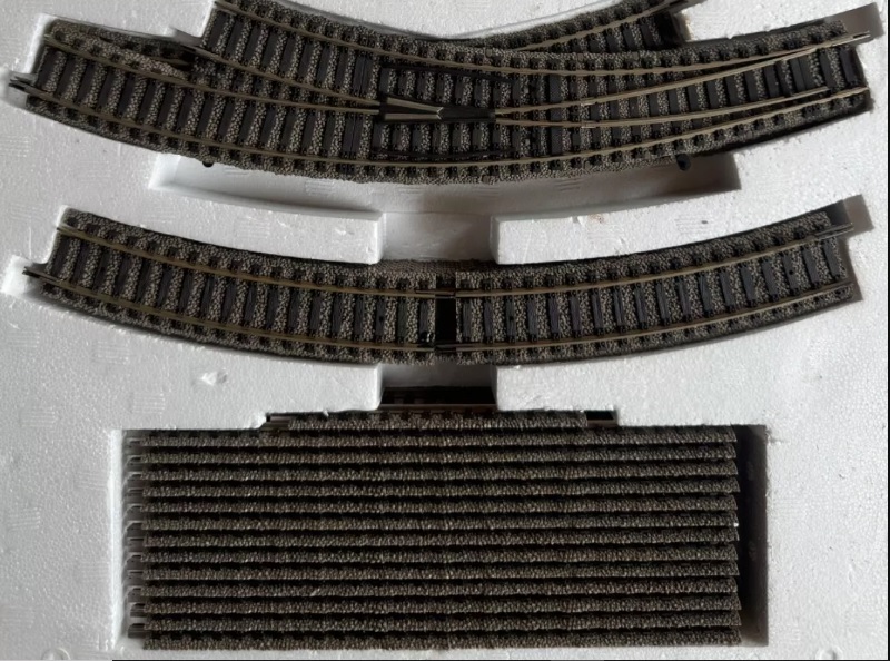 Макет перестав мене влаштовувати, в першу чергу через дефекти рейок. Точніше, не стільки самих рейок, а наслідків невдалих експериментів з впилювання у овал радіусних рейок та деяких помилок. Не брався щось змінювати, але якось побачив на Є-бей набір "Фляйшман профі" з двома радіусними стрілками за 50 євро. Це майже ціна однієї стрілки... Ось такий: Але повного овалу у цьому сеті немає, тож довелось докупити декілька кривих. В цілому, рейковий справив гарне враження. Але треба мати на увазі, що у "Фляйша" якась своя філософія колійного матеріалу. До прикладу, стрілки це Р3-Р1, хоча вони згідно їх схем використувуються на овалі Р2. Спроба "подружити" їх з кривими стороннього виробника призвела до проблем з проходженням стрілки. Одні і ті самі елементи можуть використовуватись у різних радіусах. Не буду довго на цьому зупинятися, якщо кому цікаво - погугліть схеми "Фляйшу", там видно. Для прикладу: Після того, як схема зібрана тільки з "Фляйшу" без сторонніх домішок, все поїхало без проблем. Зовнішній вигляд баластної призми найкращий з усіх, що бачив. Невелика, але гарно пропрацьована. Ще в "+" цього рейкового - у стрілках є перемички, які легко дозволяють робити ізольовані ділянки. Але повернемось до макету. Крім нового рейкового, трохи збільшив підмакетник та змінив наповнення макету. Попрацював над рельєфом. Зараз загальний вигляд отакий: Архітектура ще не зібрана і не встановлена, рослинності теж майже немає. Сформовані тільки загальні обриси. Далі буде...