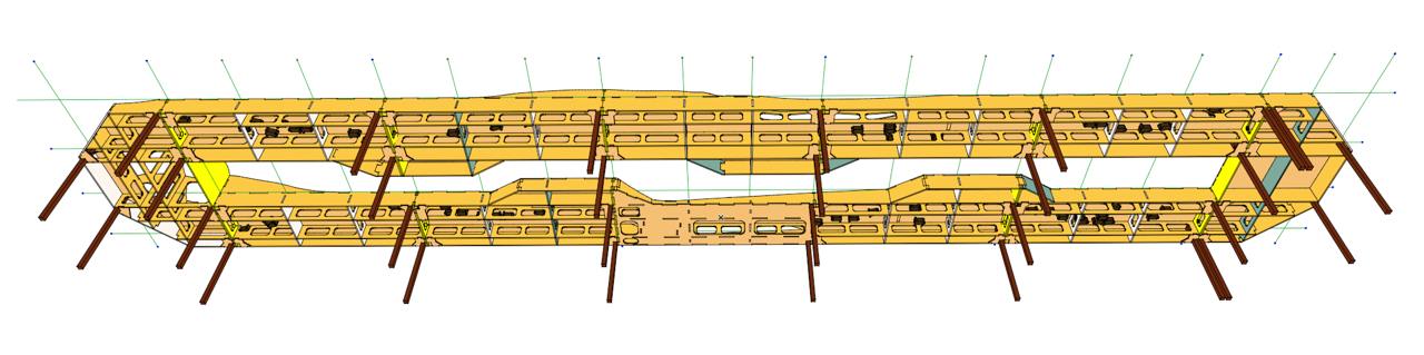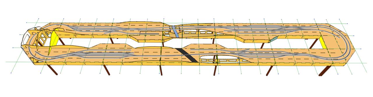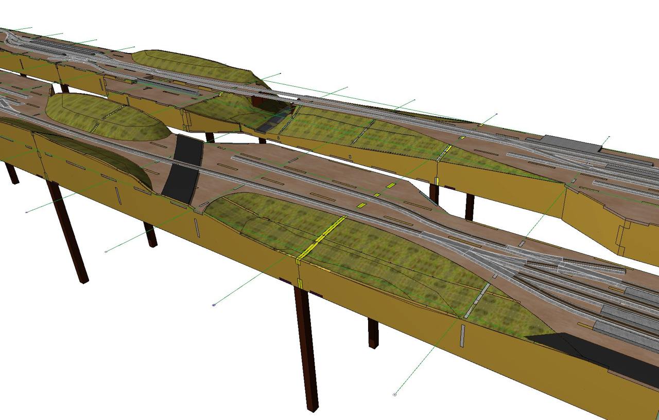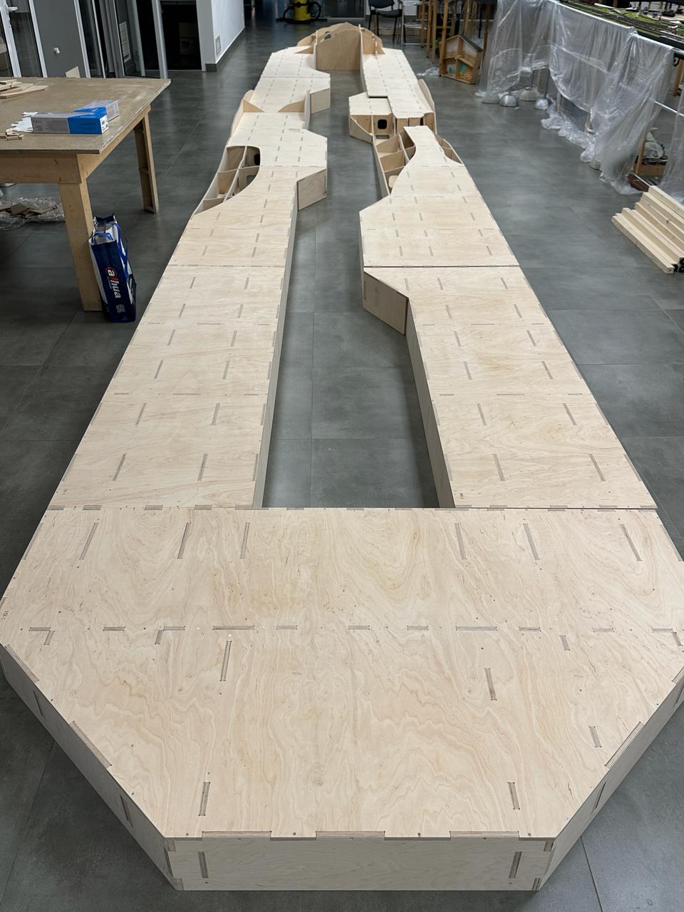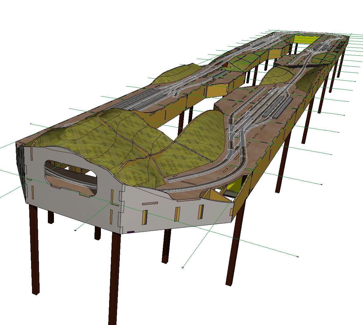 Розроблено просторову композицію макету, враховані всі перепади висот й бажані рельєфні сцени, сформовано 3-д модель ландшафту. З якої вже викреслені усі майбутні епюри розкрою деталей. Загалом макет розклався на 18 листів фанери 2500х1250 мм. Загальна вага фанери склала 468 кг.