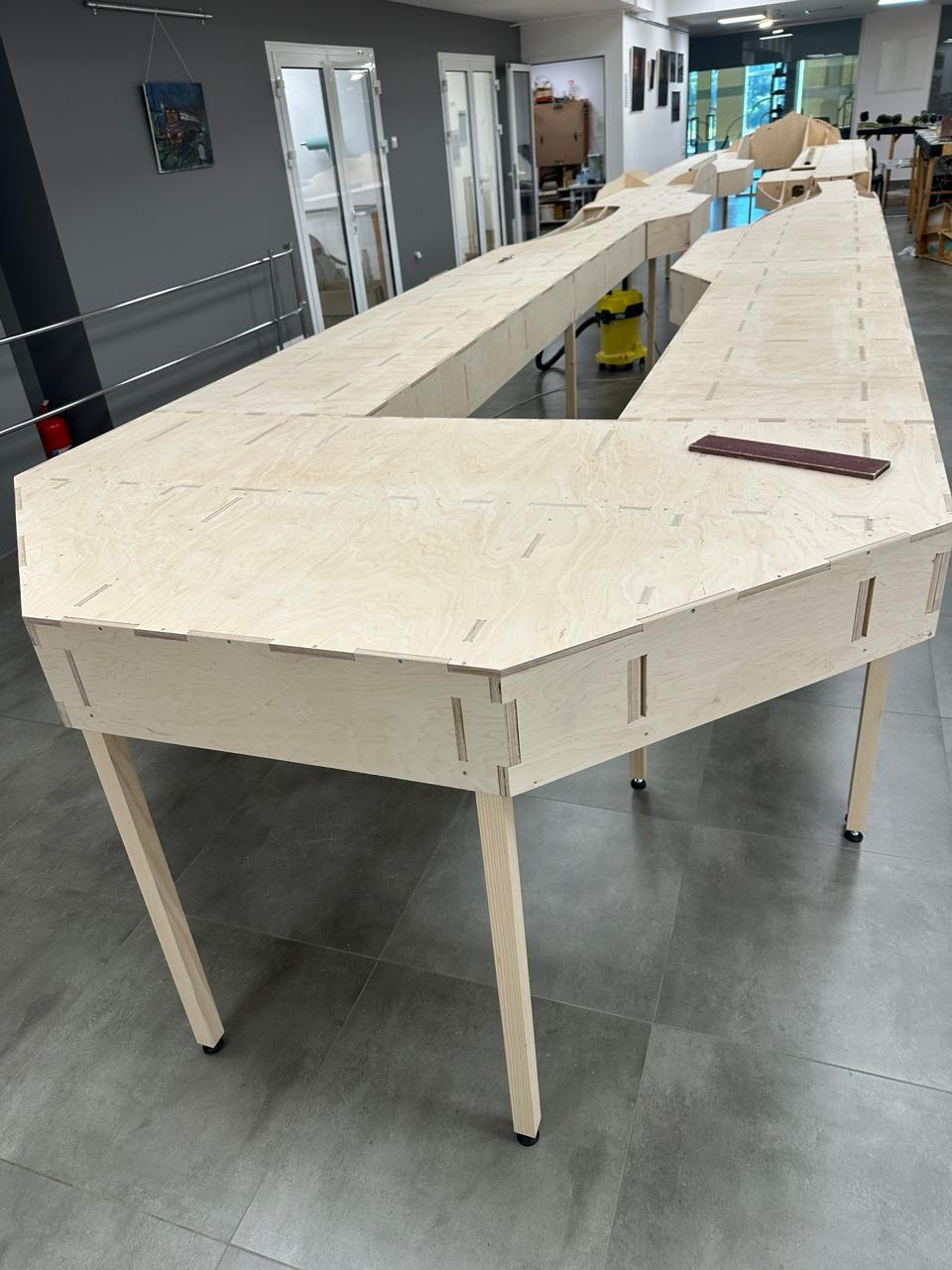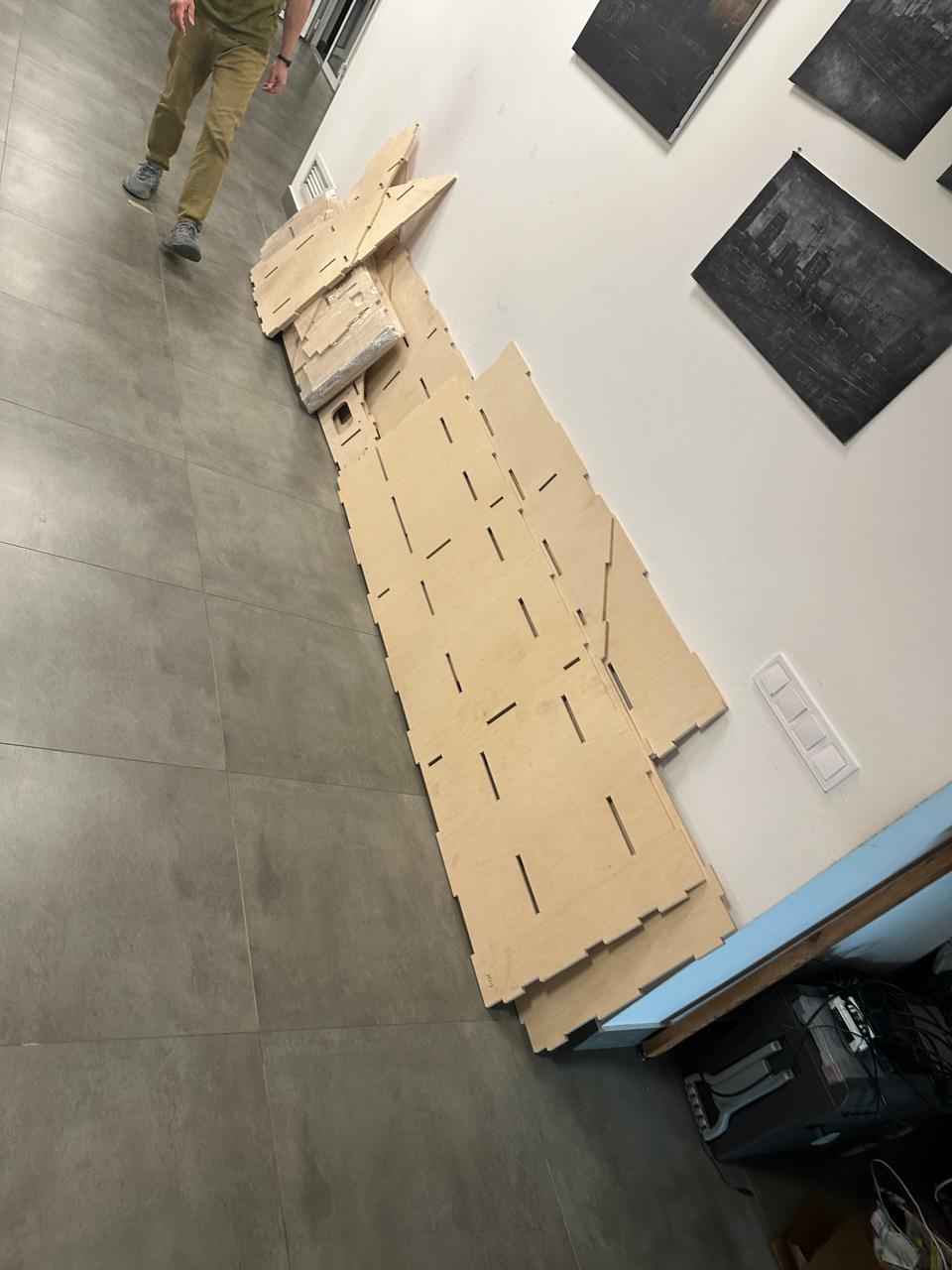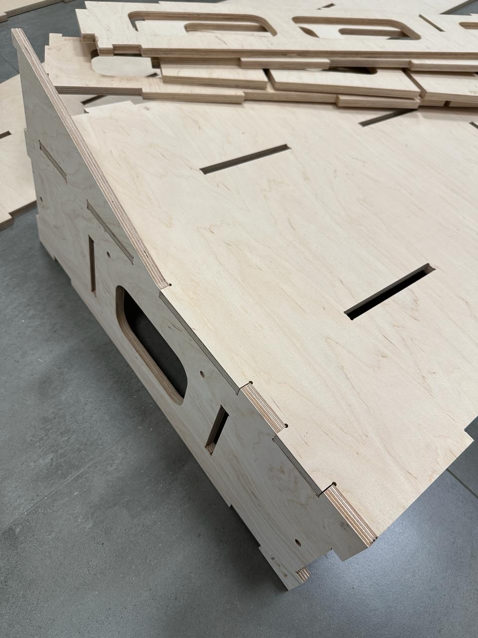 Фанера була найвищої якості й краси. Настільки гарний рисунок текстури, що шкода було його використовувати не для фінішного покриття. Тримати в руках такий виріб - кайф. Фрезеровані деталі збирались ідеально, єдине - людський фактор. Супер спішка й обмаль часу на проектні роботи(все креслилось реально за 4 дні), як результат - дві чи три мікро помилки які я допустив при проектуванні (виправились напильником й пилкою за 10 хв, з'їхав в одному місці шип і паз на 3 мм...).