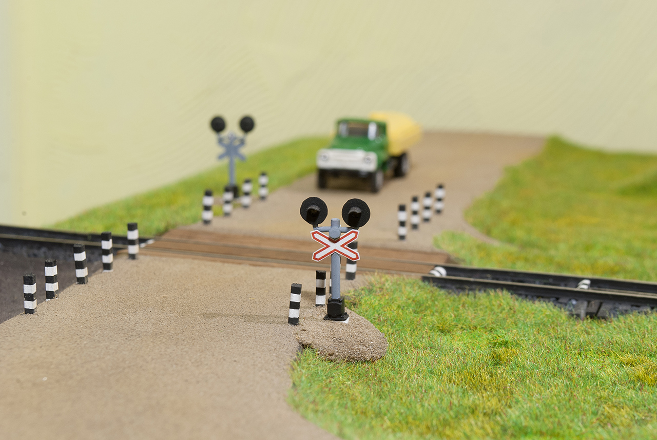 Переездной светофор, как по мне, несколько грубоват, а ящик и кабельная коробка шикарные. Отличная работа.