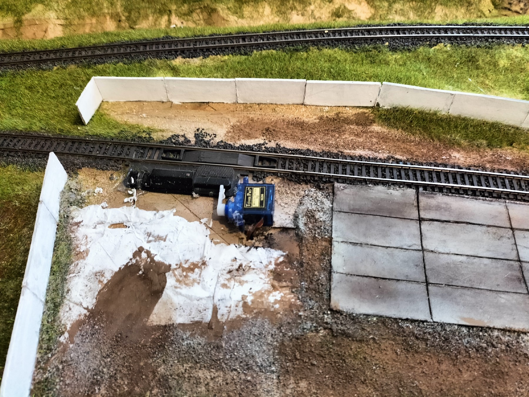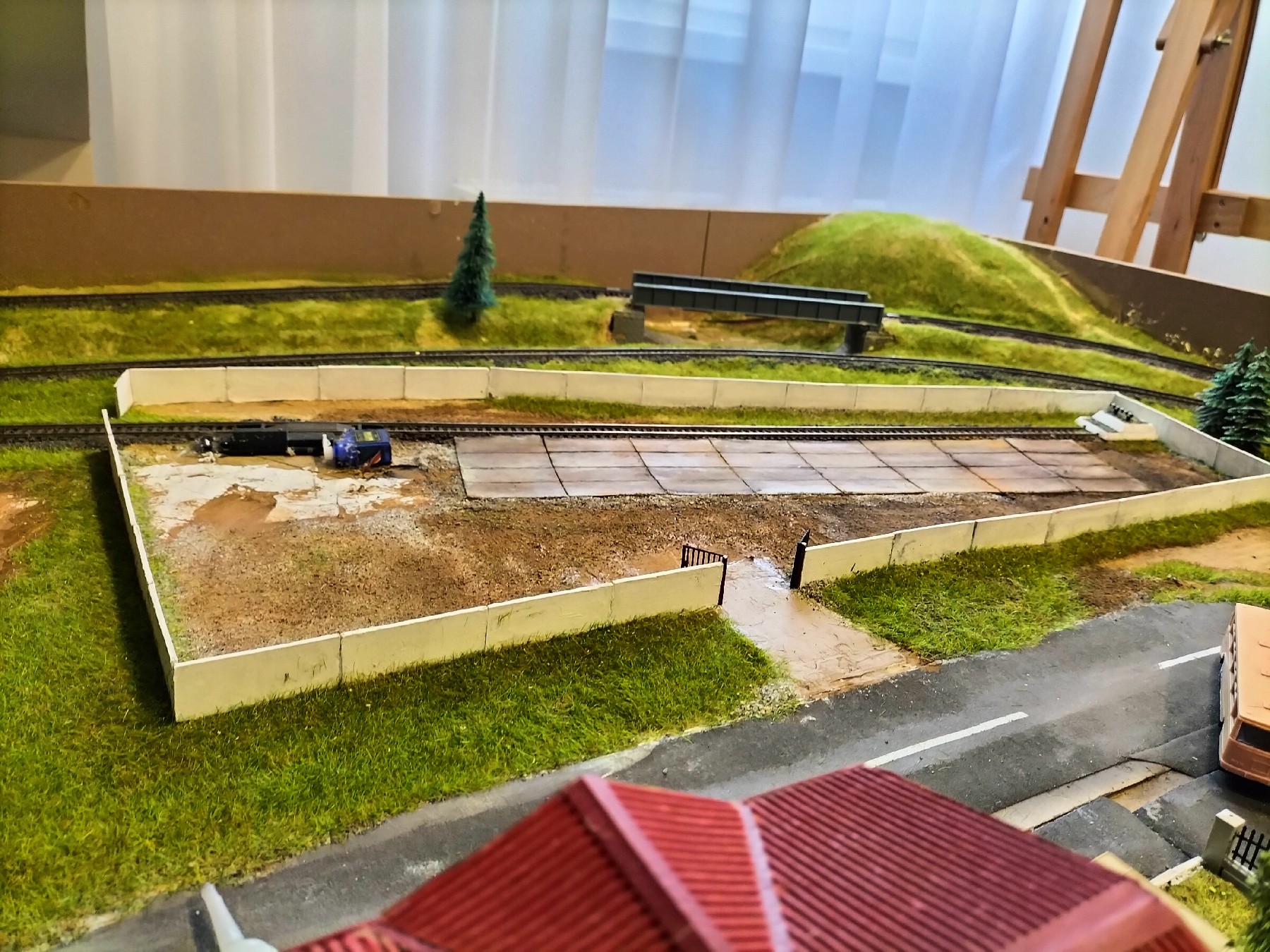 Забув додати щодо промзони - спочатку думав поставити там козловий кран від Аухагена, але він не вліз би по ширині, тому обмежився лише майданчиком для сипучих вантажів. Треба іще якось заховати механізм розчеплювача та серву, а також поставити освітлювальну мачту.