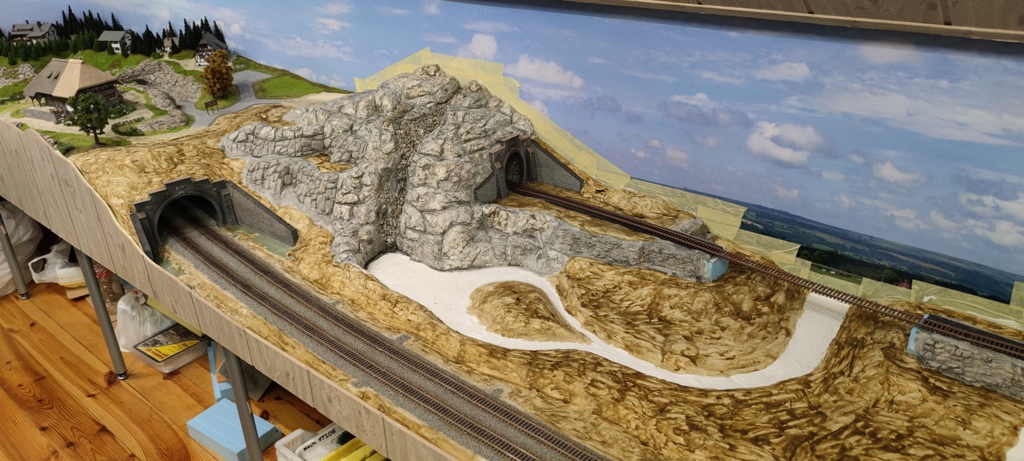 Перед самой войной я начал делать, наверное, самый интересный элемент макета - водопад. До войны успел сделать только основу рельефа из ЭППС и начал делать скалы. И вот продолжение.