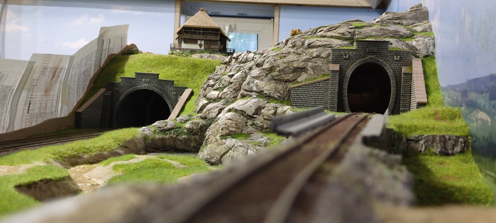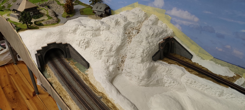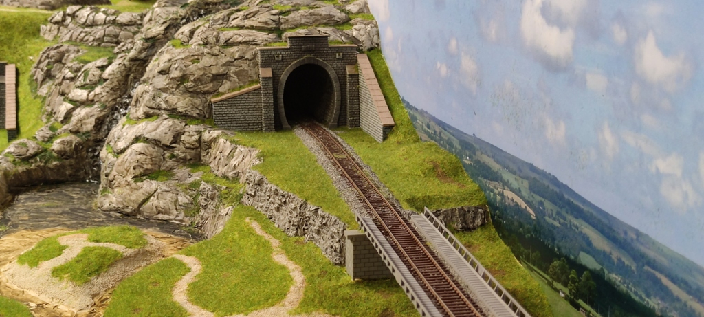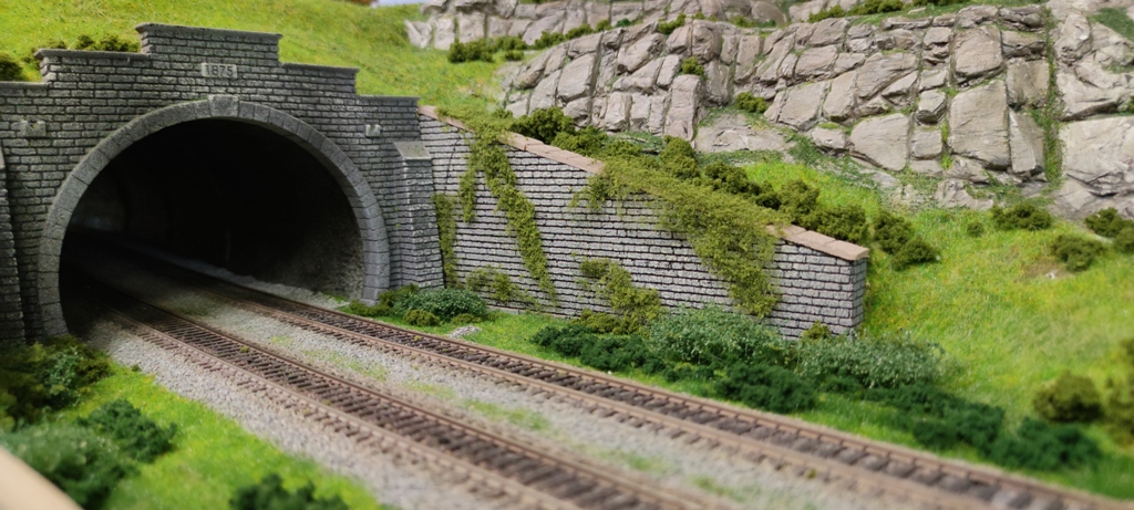 Постепенно рельефные работы по макету приближаются к завершению. Закончил последний туннель. На фотографиях показаны основные этапы работ. Из-за ограниченного места пришлось сделать подпорные стены у подножия горы. Эту гору я решил делать без скал, но зато полностью покрытую лесом. И вот здесь возникла проблема. Начал "высаживать" елки, посмотрел и, увы, такой лес мне как-то не понравился... :( Поэтому я сейчас в раздумьях, что делать. Основной вопрос: какой делать лес - хвойный, лиственный или смешанный. Какое-то количество елок (штук 70 приблизительно) у меня есть. Частично покупные, частично самодельные. Примерно половину горы можно засадить прямо сейчас. Лиственные деревья нужно делать практически с нуля, хотя пару десятков заготовок у меня есть. В общем, пока не знаю... :?: