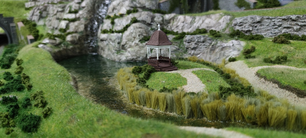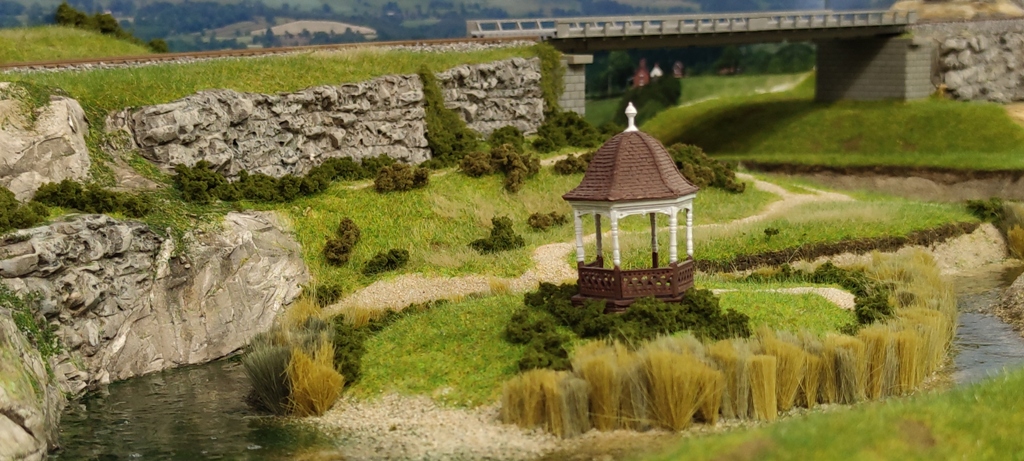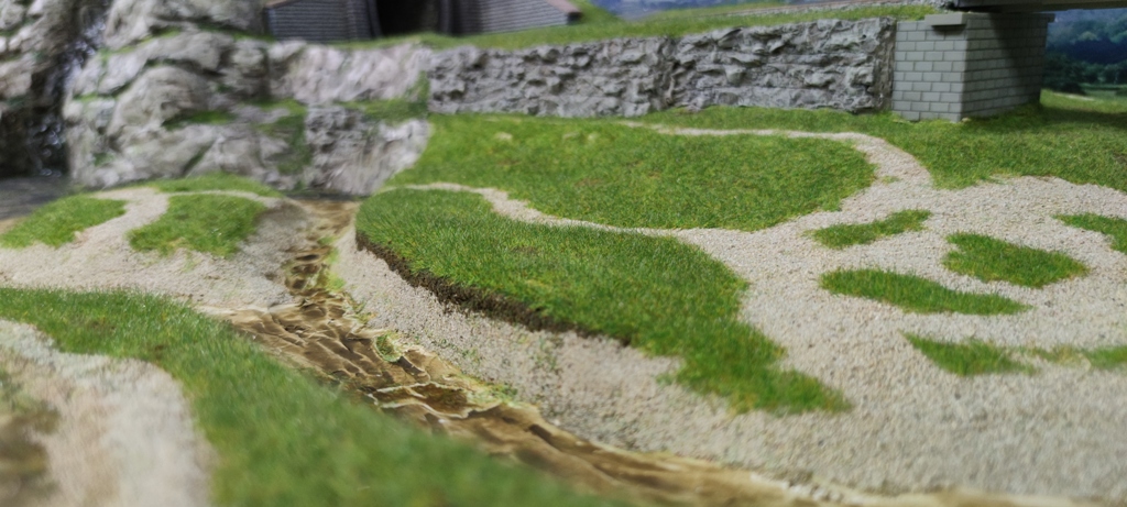 Далее установка моста, балластировка пути, посев травы. На фото результат после первого посева.