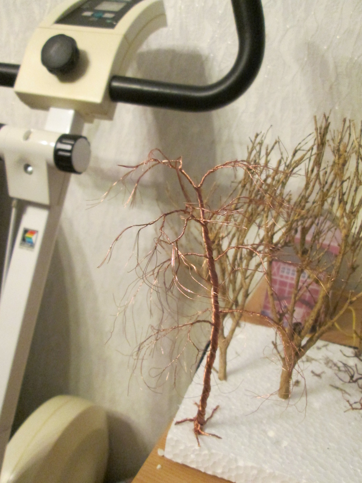 я готов делать все, главное чтобы результат удовлетворял. уже 2 кустарника накручены, сделаны тогда же когда и ствол дерева из остатков проволоки от дерева, а сегодня начинаю новое дерево, по задумке взял проволоку еще меньше толщины, посмотрим что получится