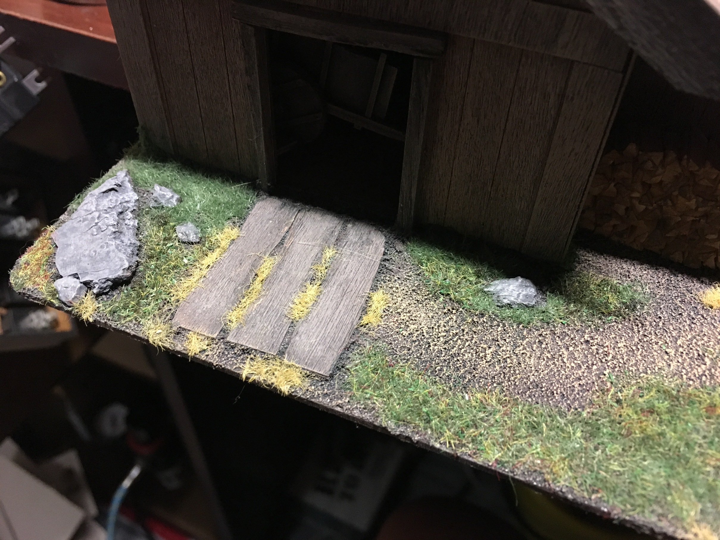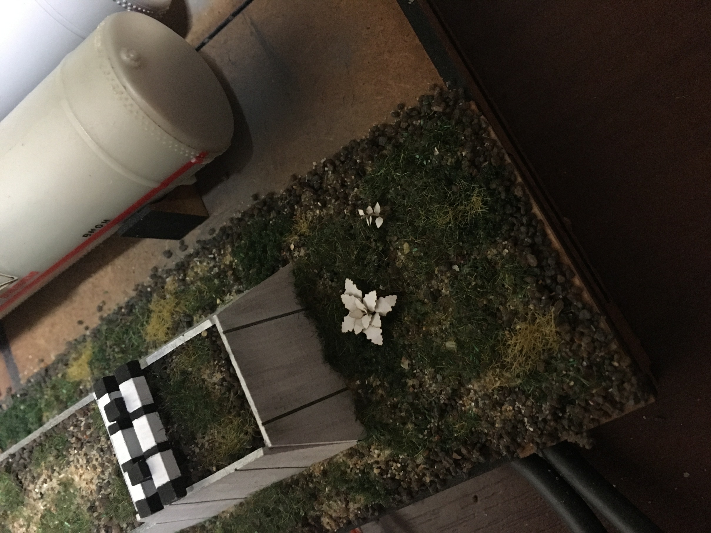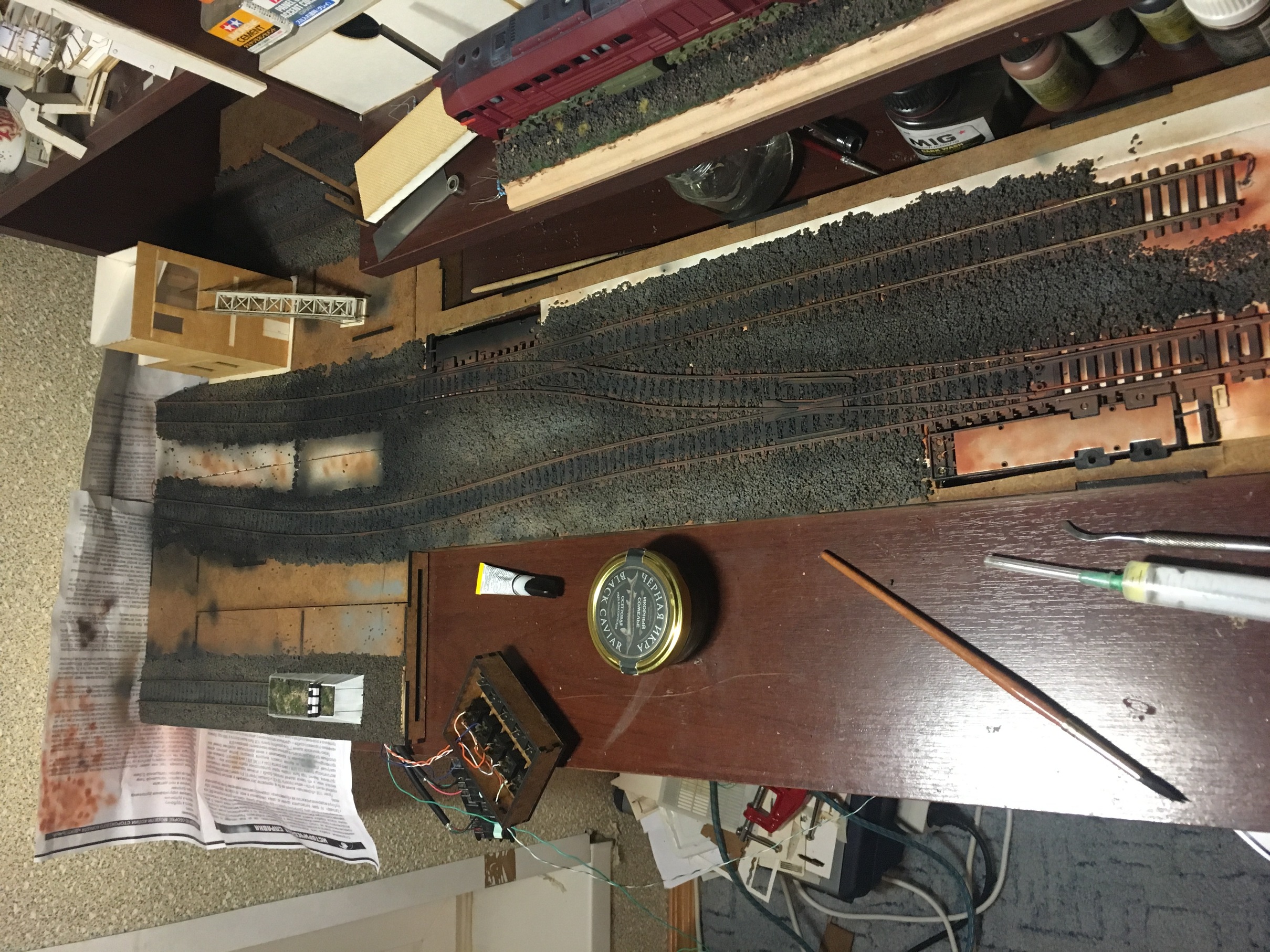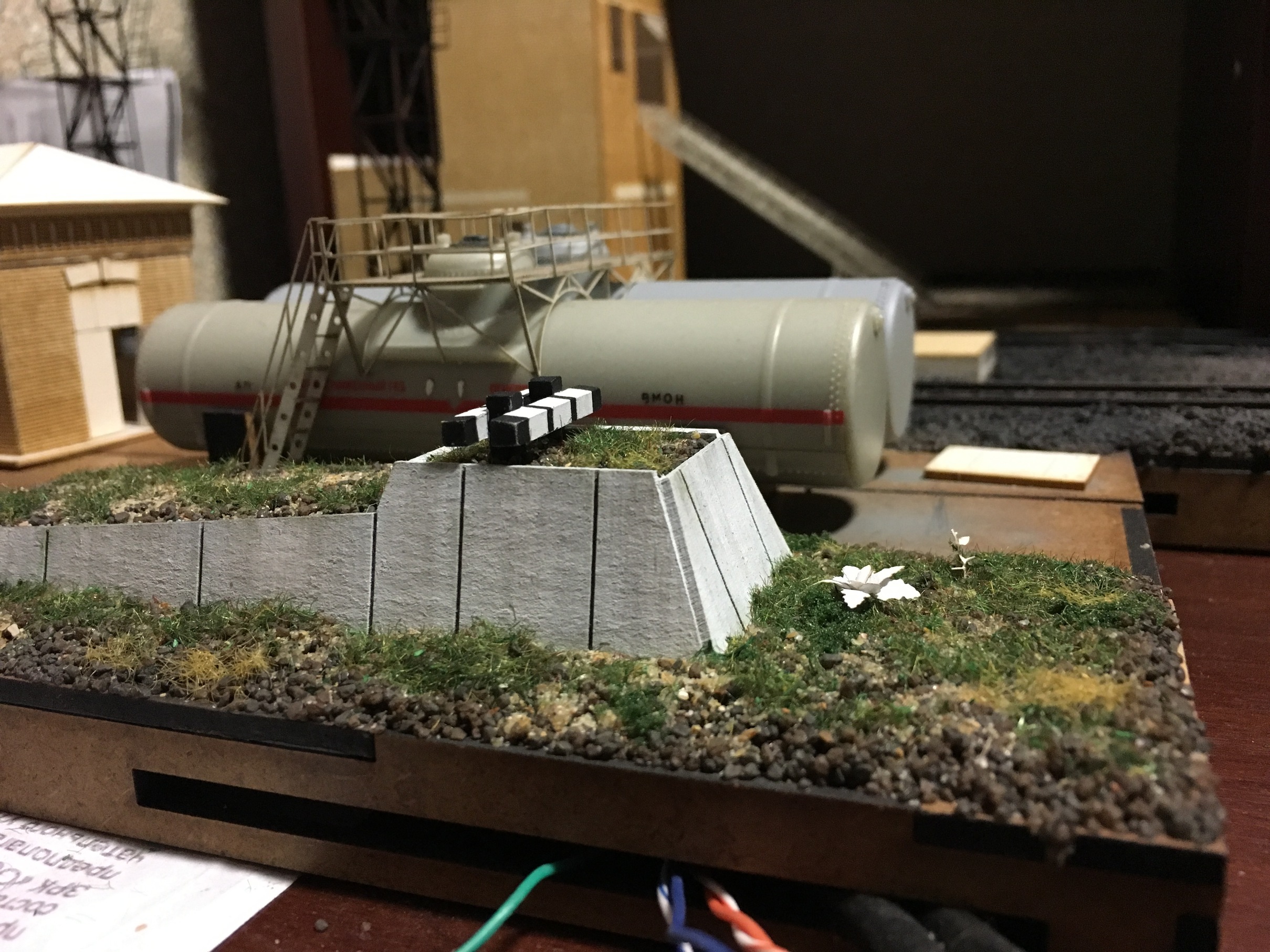 Здравствуйте уважаемые. На счёт щебня и прочего. Я не хотел связываться с затирками типа шпатлёвки и гипса. На фото выше, примерно показано, что я хочу. Но там обычные пути. Я позже выложу фото, непосредственно с ПТОЛ станции Дмитров. Откуда само здание ПТОЛ. Там точно так же щебень везде. С одной стороны песок, так как там здание песочницы, с другой щебень и совсем немного земли. Точнее, её почти нет. Даже тропинка и та по щебню, с совсем легким налётом земли. Я понимаю прекрасно, что имели в виду. Полное отсутствие щебня, всё ушатанное, в земле, налёте масла и остатков прочего и местами травы немного. Но причина, по которой я от этого отказался, в начале сообщения. На фото ниже, результат по тупику. У самого ПТОЛ и заправки, будет примерно так же, только изменятся пропорции песка и растительности. И кое-где, пройдусь специальной затиркой для декора. На нескольких фото ниже, показал эффект этой затирки. Просто сухой кистью иначей пройдусь и потом смывками. Это несколько зданий в 1/60, для настольных игр.