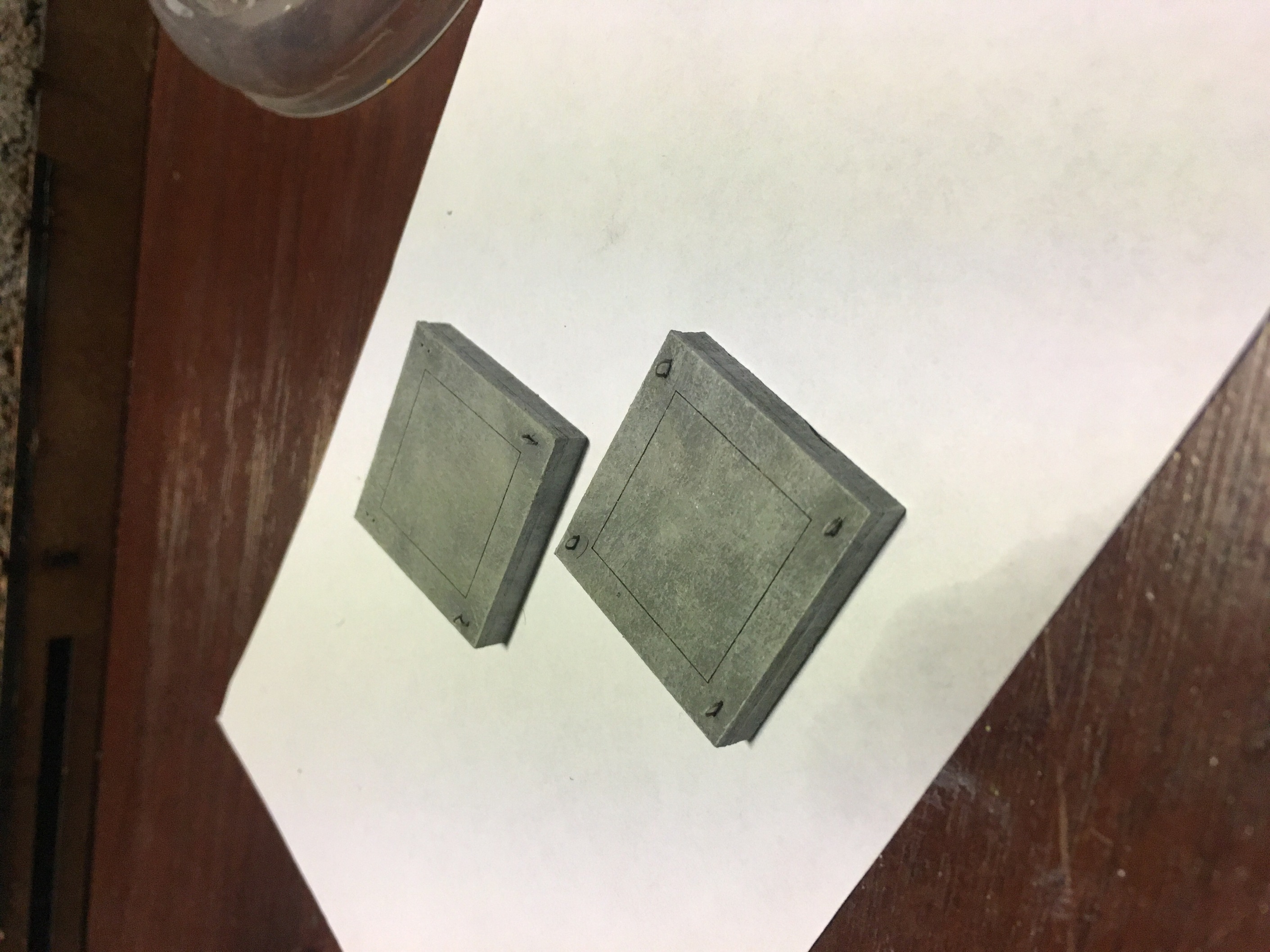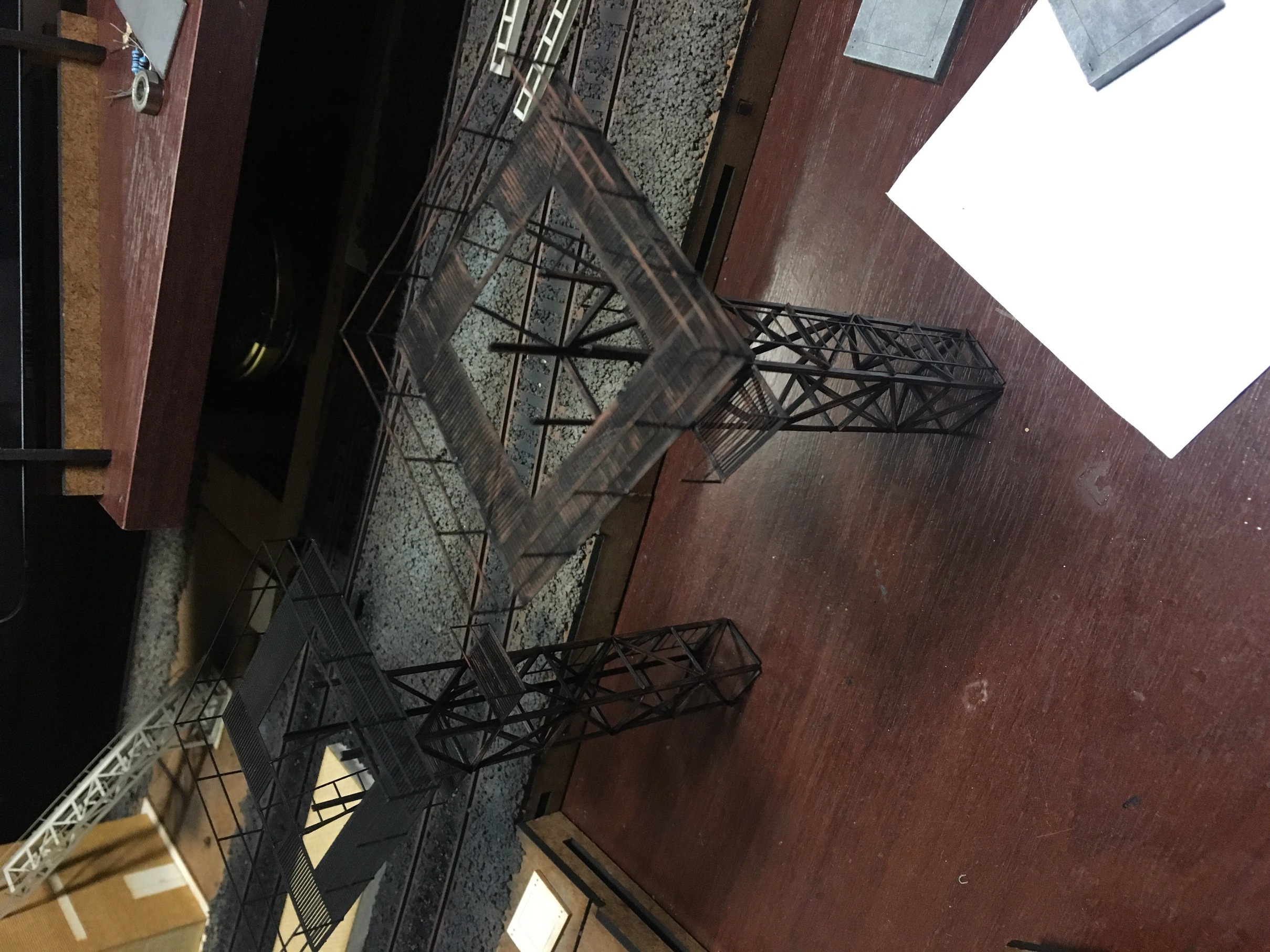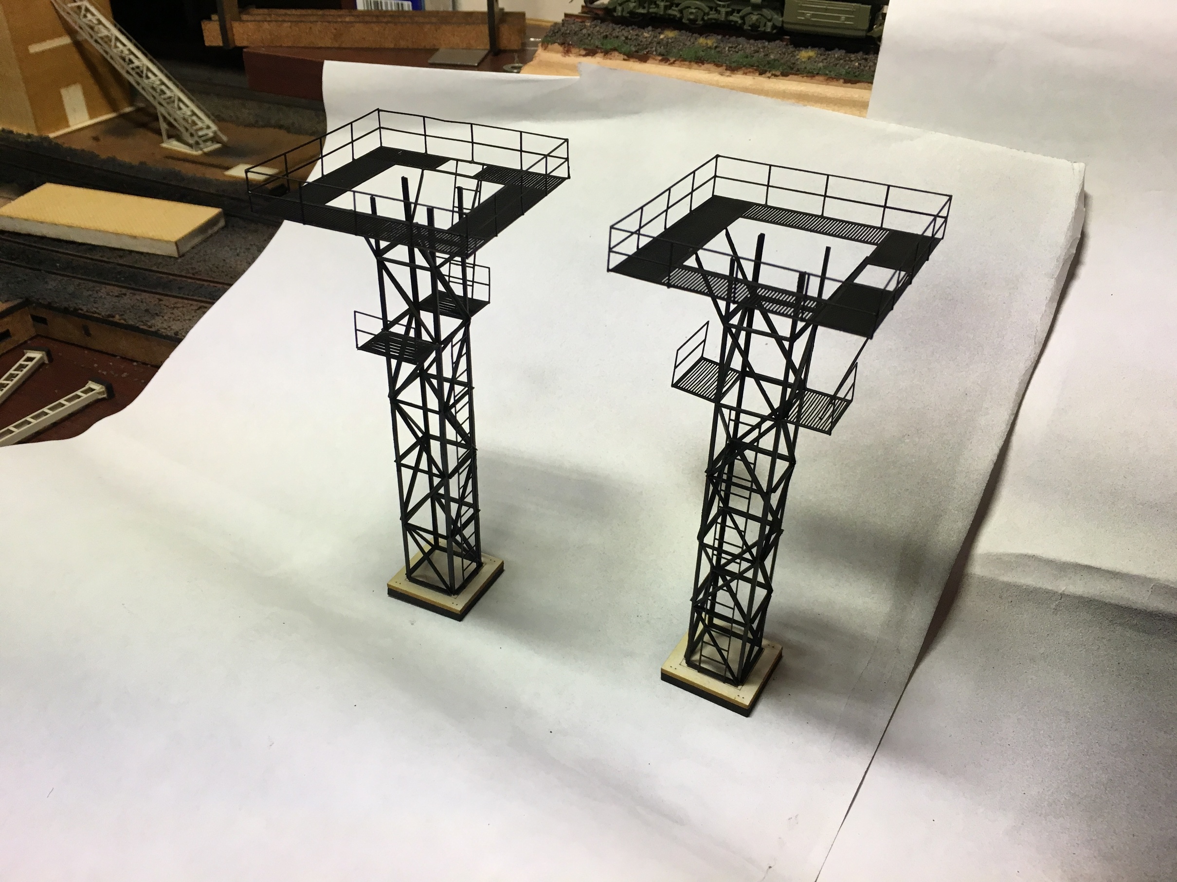Далее занялся пакгаузом. Задул внутри черным. Оставалась в бачке краска, решил мачты песочных бункеров задуть. Вслед за этим, начал потихоньку ржавчинку и прочее добавлять. На фото, всё в зачаточном состоянии. И подготовил основания. Когда установлю на места и обсыплю балластов и прочим, затонирую финально.