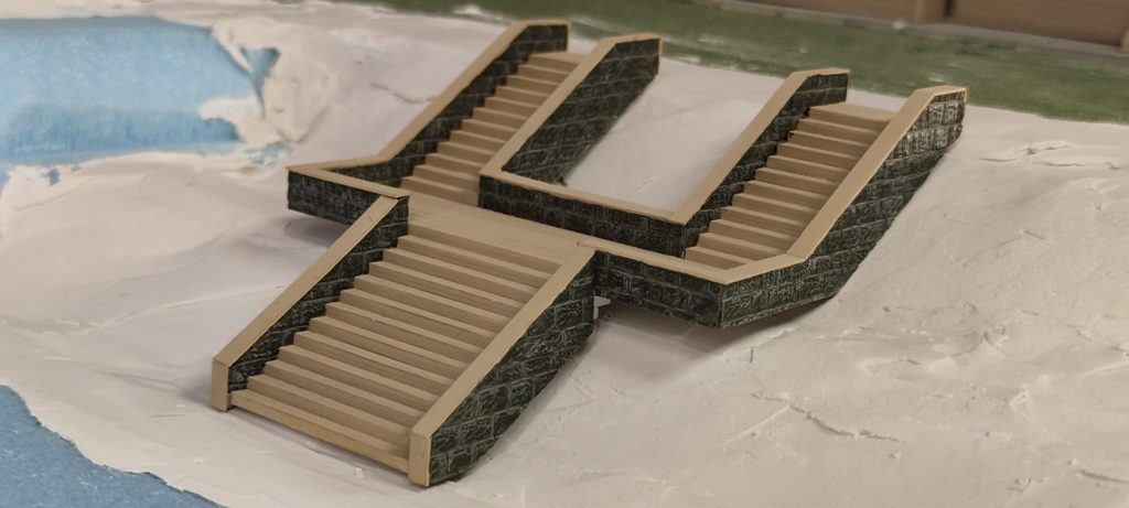 Пока болел сделал лестницу в парк из санатория. Делал ее из подручного материала по мотивам типовых лестниц в наших парках с учетом ограниченного места и перепада высот. Вот что получилось. Рельеф, в который будет вписана лестница, пока в зачаточном состоянии.