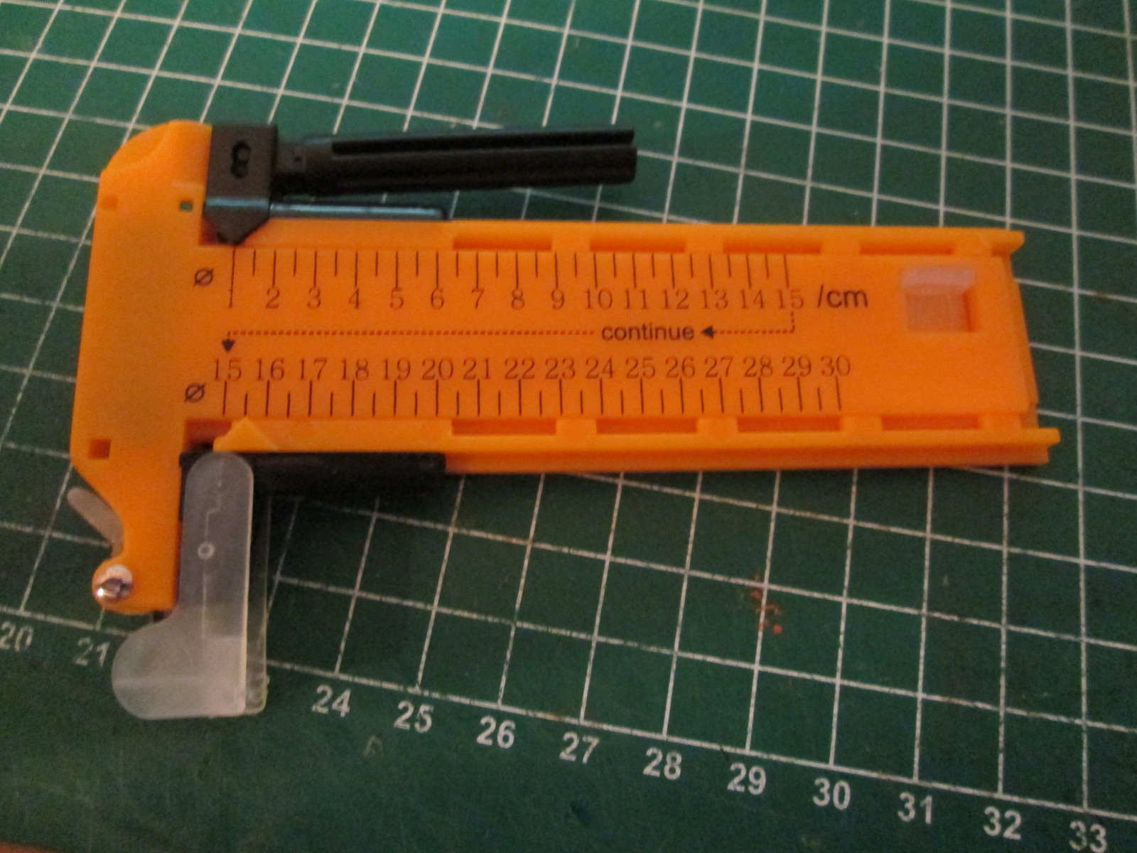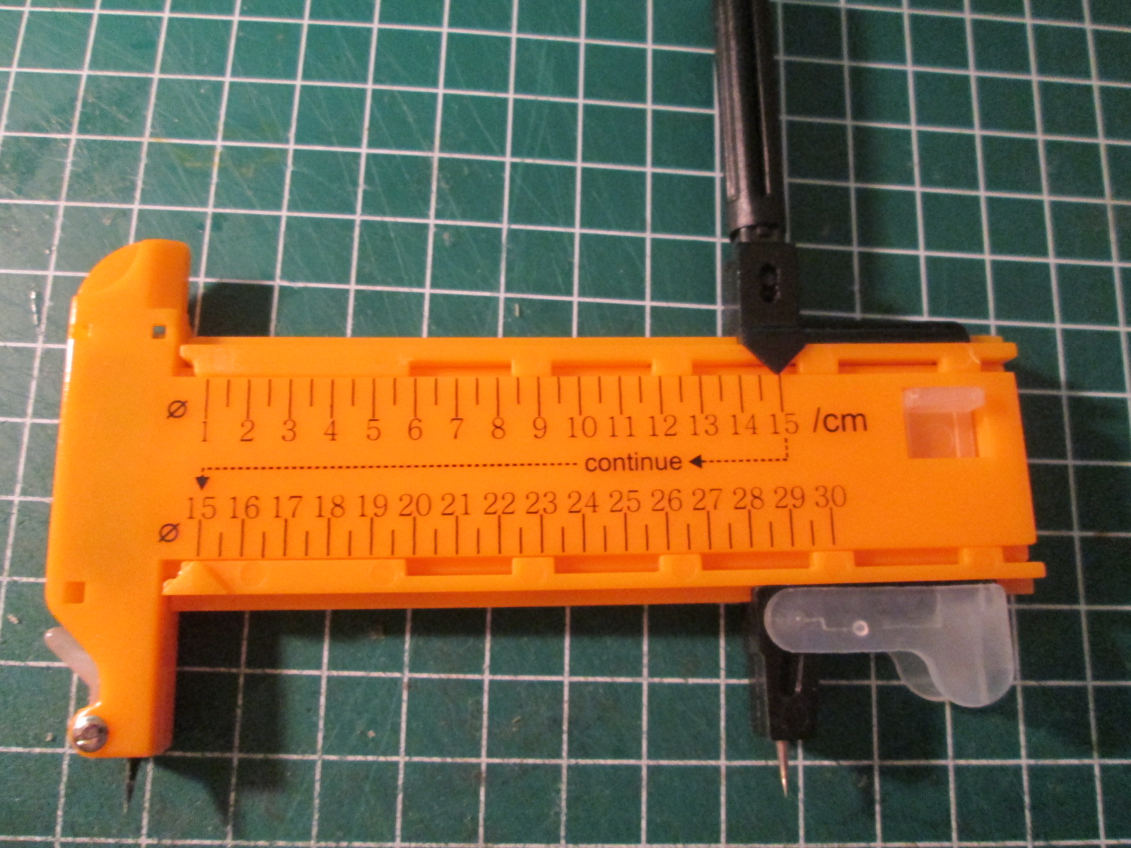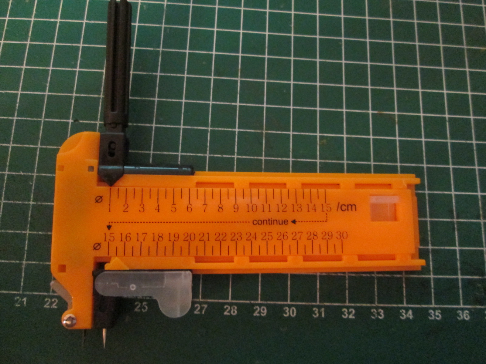 в собранном виде в рабочем состоянии вырезание колеса из бумаги минимального радиуса, который позволяет инструмент результат можно вырезать и радиусом 15 см и радиусом 30 см (максимальное значение) пробовал резать и на пластике, тоже вполне годится, но нужно приноровиться. сразу сильно давить не рекомендую. лучше легонько много раз провести по кругу и будет тогда все нормально