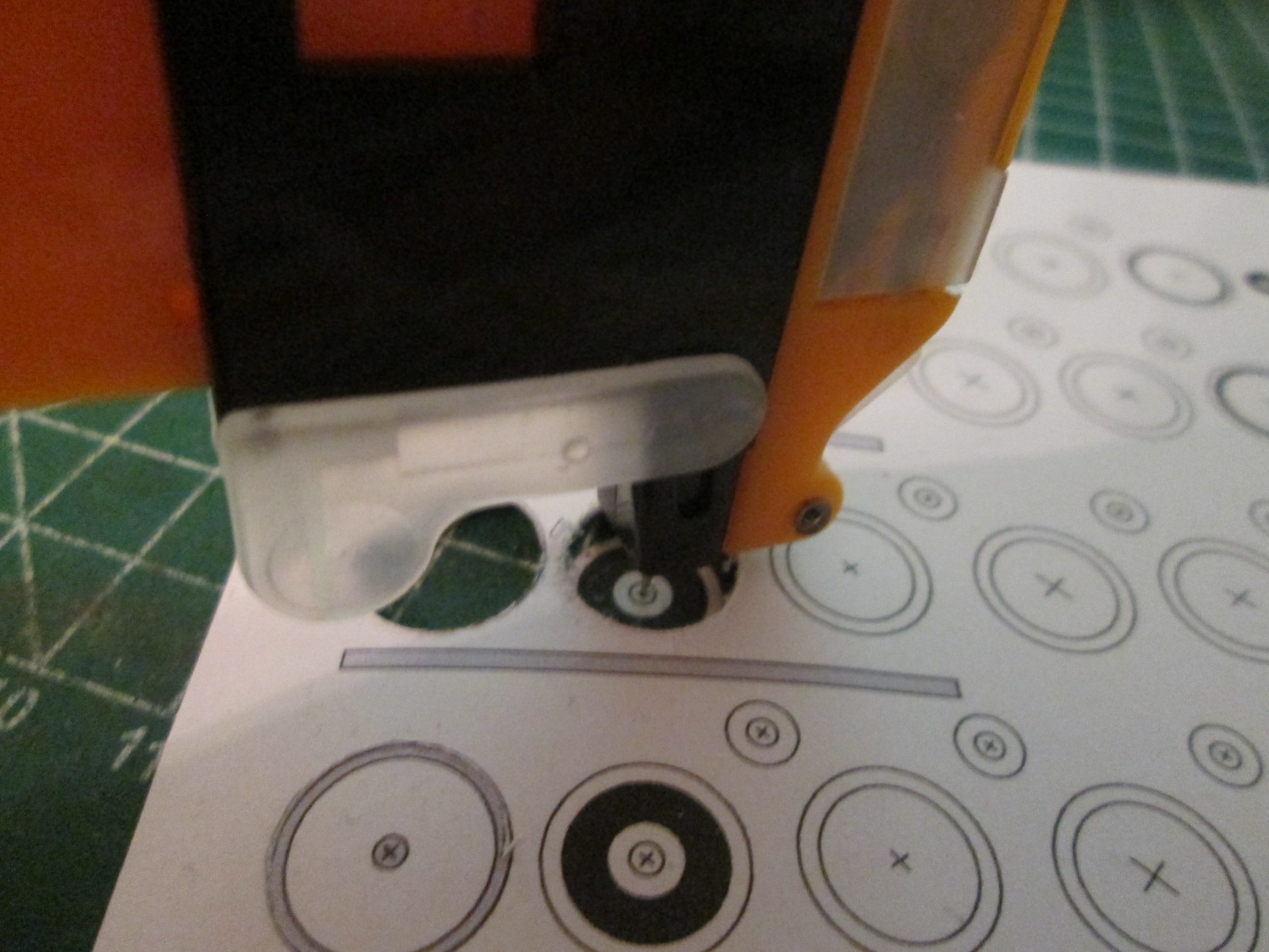 вот что у меня получилось что касается ножика, то им удобно вырезать круги, они очень применимы у моделистов по бумаге, когда им надо вырезать отверстие или колеса очень ровно. работает данный нож по принципу циркуля, но я покажу на фотках
