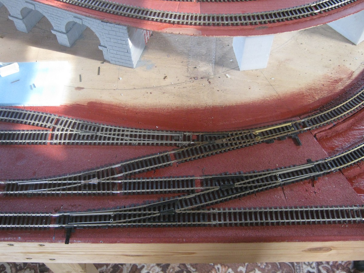 На днях получил от нашего коллеги http://oef.com.ua/viewtopic.php?f=11&t=744 обычные прямые стрелки Atlas. Добавил их к имеющемуся путевому материалу и горловина теперь выглядит так. Проблемы вроде исчезли, но для полной уверенности конечно надо интенсивно погонять, о чём уже упоминал. Только никак не получается...