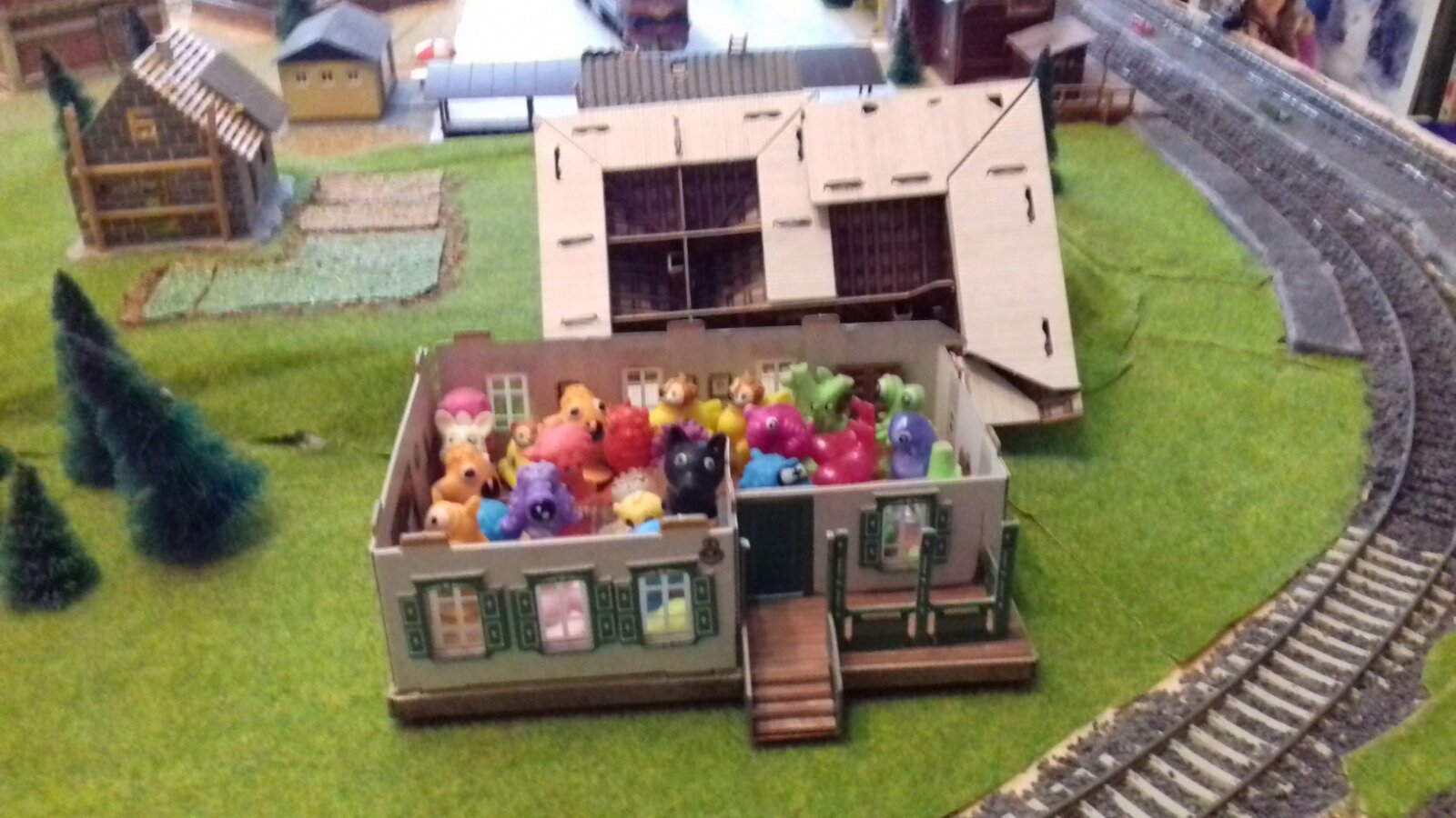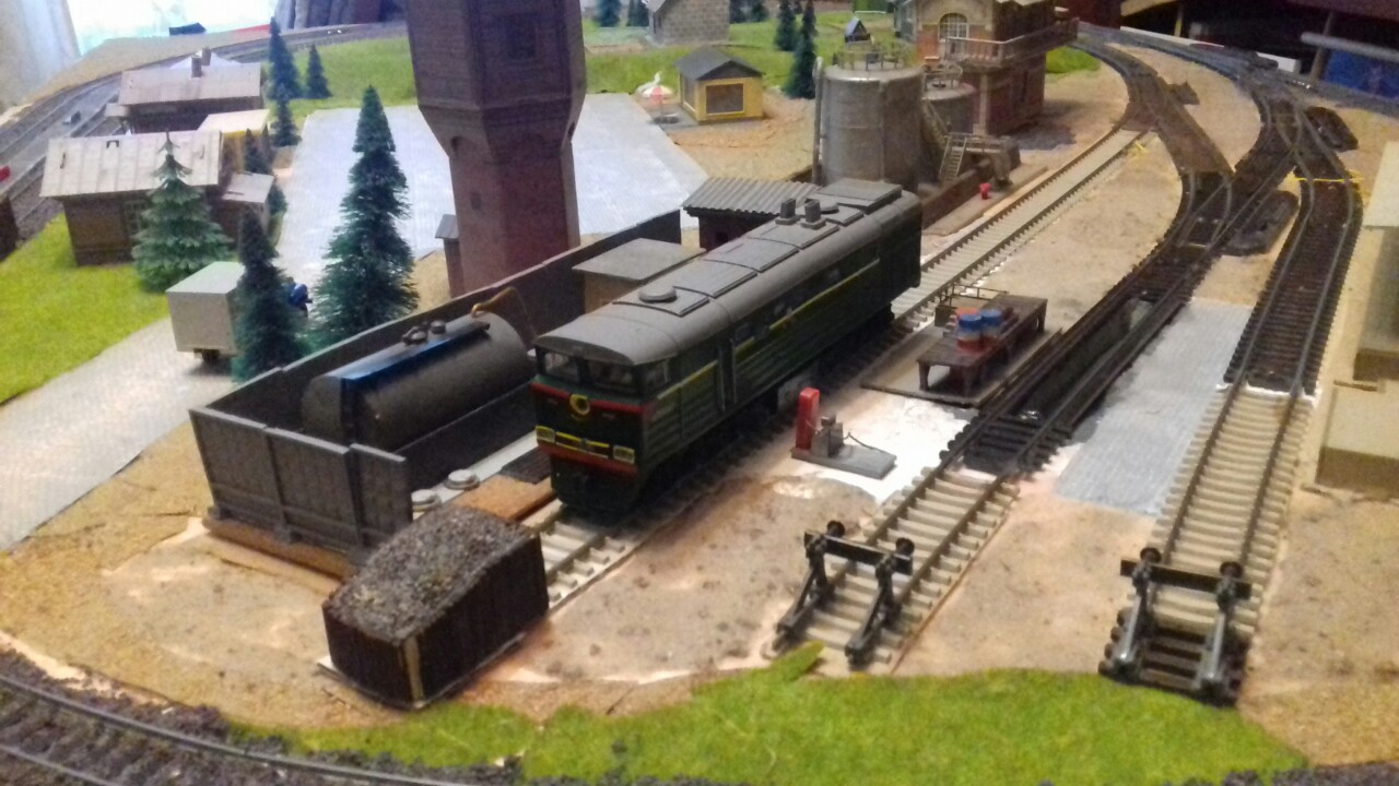 Благодаря одному нашему коллеге удалось раздобыть забор, типичный для наших пейзажей. Отливки из смолы, исходник выглядел приблизительно так: Путем несложных манипуляций собрал вот такой сегмент и окрасил под бетон. Чтобы огородить весь ПТОЛ (пункт тех. обслуживания локомотивов) имеющихся фрагментов не хватало. Впрочем, на реальной ЖД отнюдь не всегда все огорожено наглухо... потому будет пока так: Над дальнейшим развитием ограды буду еще думать.