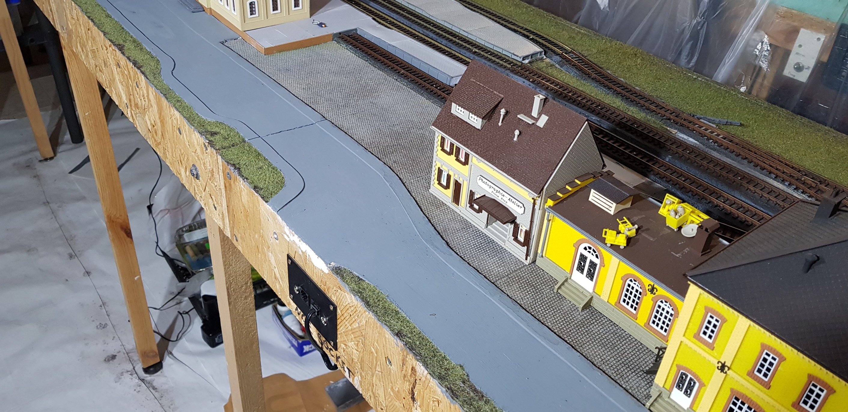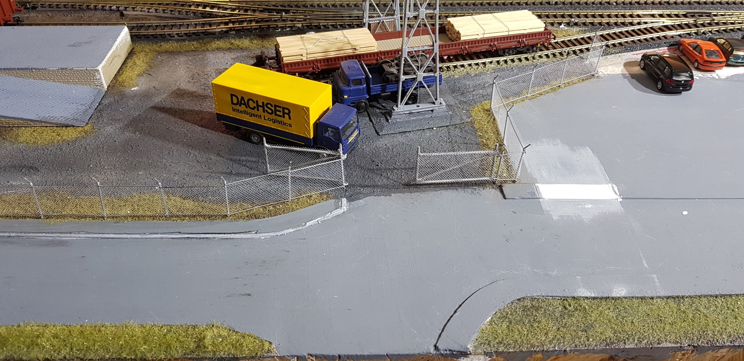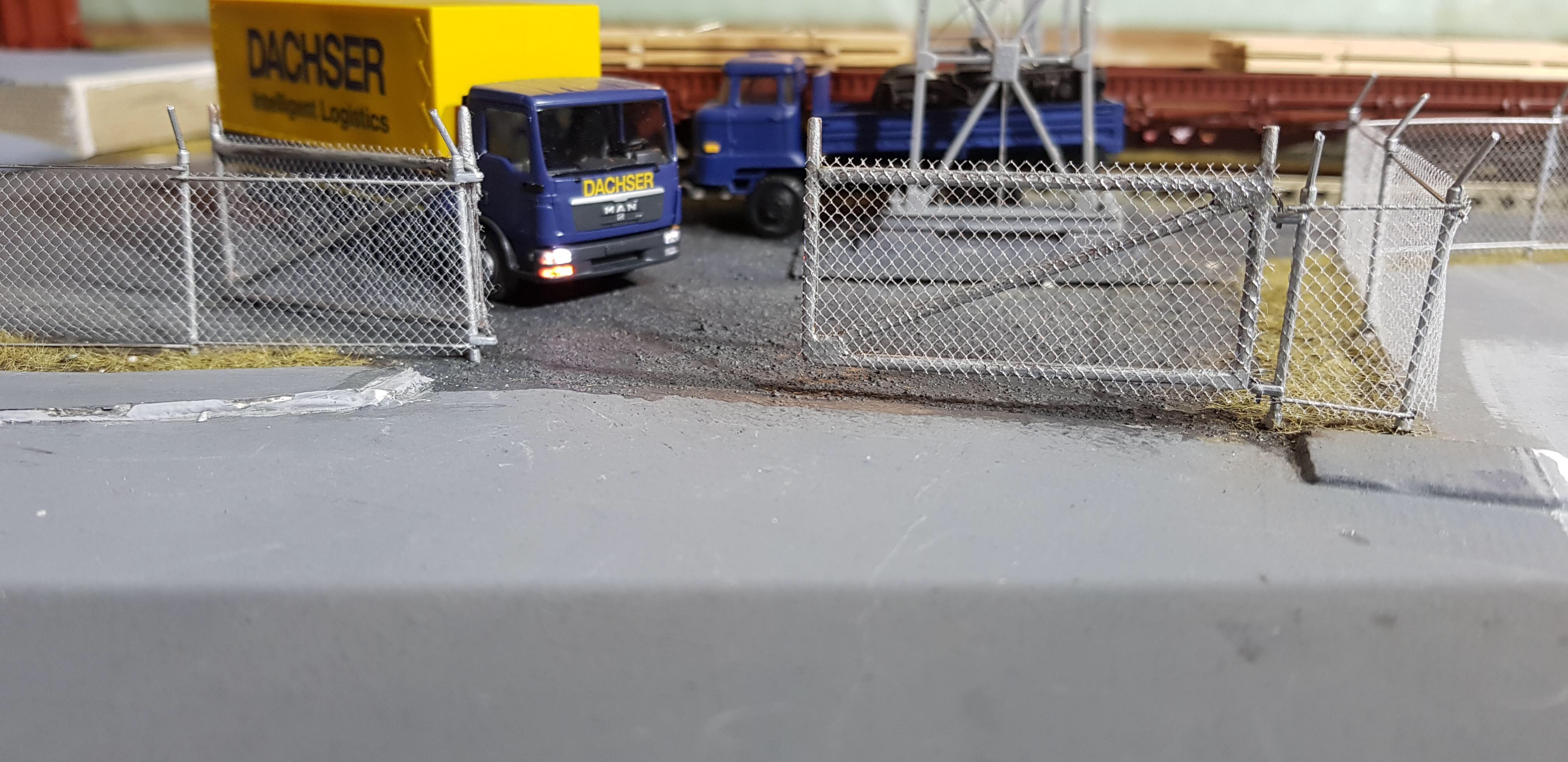 Я свои модули и макеты строю с учтём возможности езды управляемых моделей автомобилей. Из-за этого ворота входящие в состав набора забора мне не подошли- грузовики не проезжали через них. Пришлось делать свои ворота.