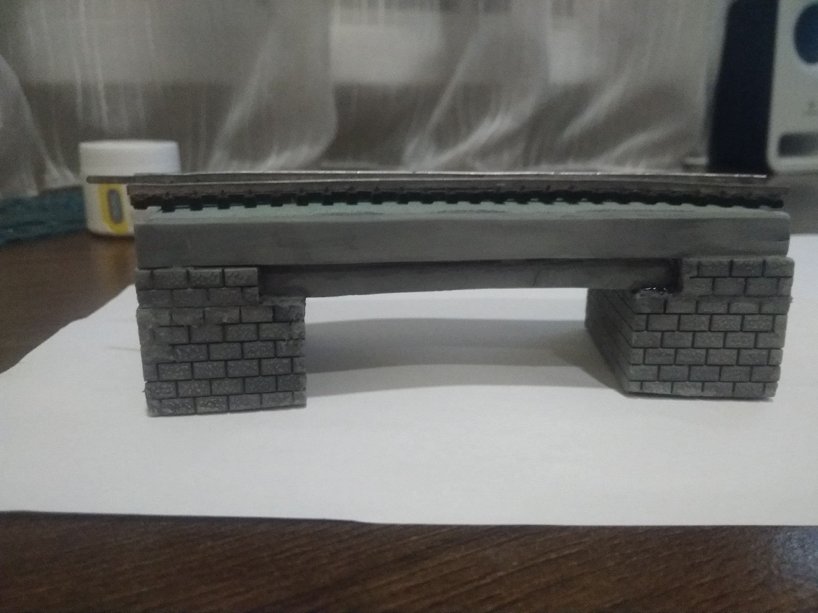 Дякую за комплімент :) Світло-сіра фарба з балону після тонування стала темно-сірою, якраз як міст. Думаю чи давати туди контррельси, чи ні. Тепер щодо концепції макету, не врешті визначився - це умовне Закарпаття, де на кількох станціях є колія як 1520, так і 1435. Пасажирські вагони УЗ після заміни колісних пар у Чопі чіпляють до словацьких, або угорських поїздів, що мають зазвичай по 1-2 вагони. Досить зручна для моделіста картина - євролокомотив, один євровагон як правило 2 класу і пару наших вагонів,при чім не завжди РІЦ, а іноді і ЦМВ нашого габариту. Аналогічно і на заходах зі сторони Румунії. Прототипом будівлі станції буде будівля ст. Виноградів, але мабуть що без бокової прибудови, або з нею, але у скороченому вигляді - занадто довга виходить, а я ще хочу рампу на 1 колії. Також думаю чи робити контактну мережу на великому колі, чи ні.
